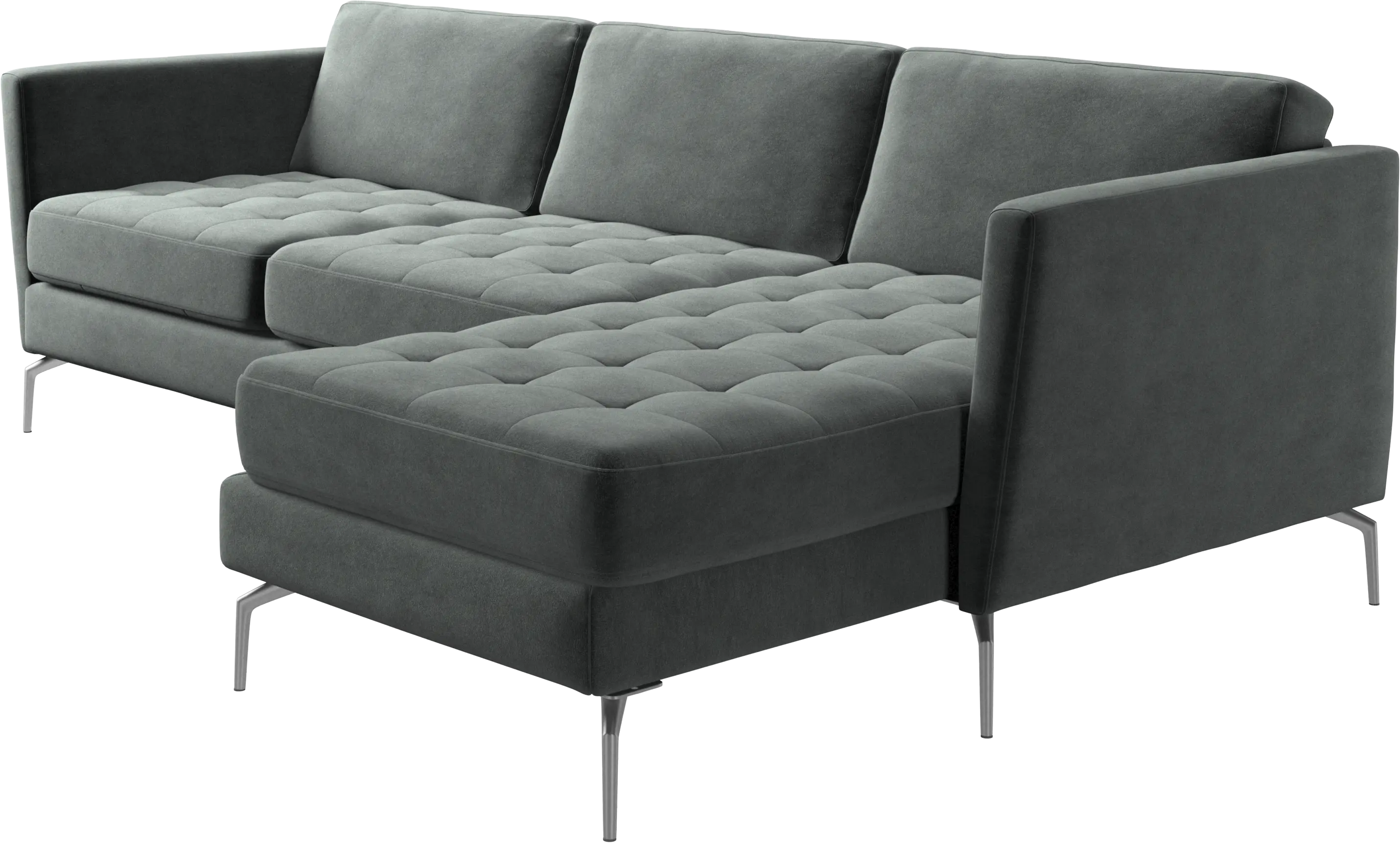 A light look and slim proportions make the Osaka sofa perfect for small homes, while a subtle feminine look and a touch of 60s design ensure that the Osaka sofa still packs a style punch. The beautiful tufted seats add visual softness and bring a classic look to your living room. Inclined armrests give the sofa a modern, unique look and open it up to the rest of the room. Put your feet up, stretch out or use it as an extra seat – you won’t be sorry for choosing this comfortable chaise longue sofa.