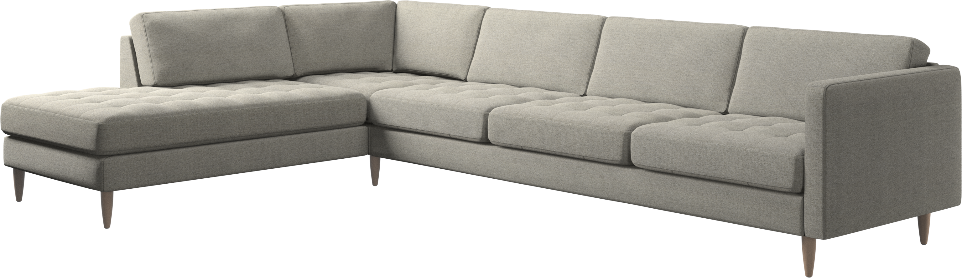 A light look and slim proportions make the Osaka sofa perfect for small homes, while a subtle feminine look and a touch of 60s design ensure that the Osaka sofa still packs a style punch. The beautiful tufted seats add visual softness and bring a classic look to your living room. The classic, straight armrests emphasise the clean lines and Scandinavian look. With plenty of room for the entire family this corner sofa will be the hero of your living room. The open end will create a dynamic, welcoming atmosphere - a true blessing for the integrated areas of open-plan living. Put your feet up, stretch out or use it as an extra seat – you won’t be sorry for choosing this comfortable chaise longue sofa.