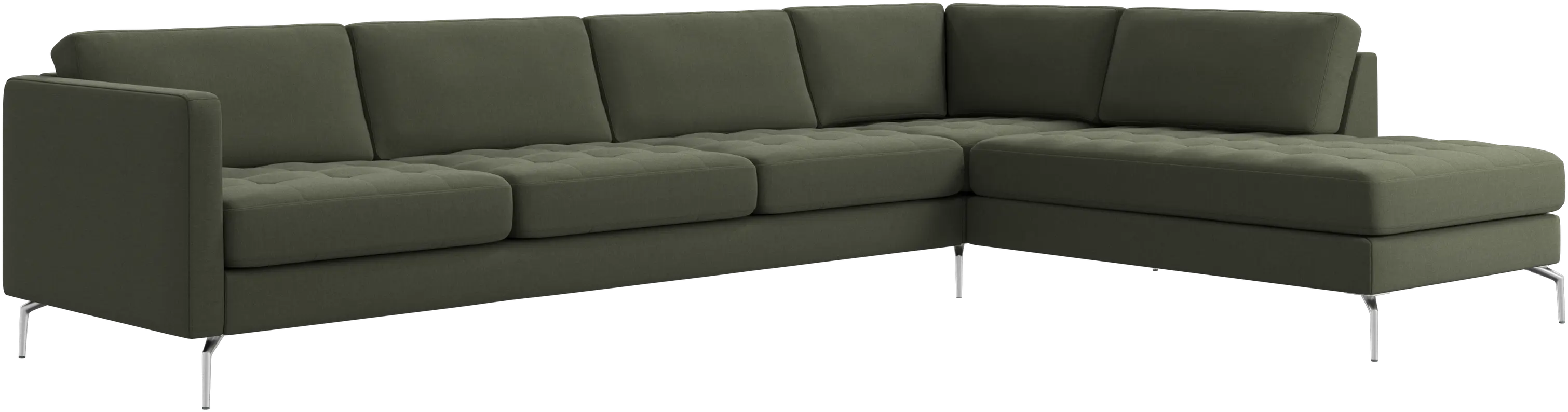 A light look and slim proportions make the Osaka sofa perfect for small homes, while a subtle feminine look and a touch of 60s design ensure that the Osaka sofa still packs a style punch. The beautiful tufted seats add visual softness and bring a classic look to your living room. The classic, straight armrests emphasise the clean lines and Scandinavian look. With plenty of room for the entire family this corner sofa will be the hero of your living room. The open end will create a dynamic, welcoming atmosphere - a true blessing for the integrated areas of open-plan living. Put your feet up, stretch out or use it as an extra seat – you won’t be sorry for choosing this comfortable chaise longue sofa.