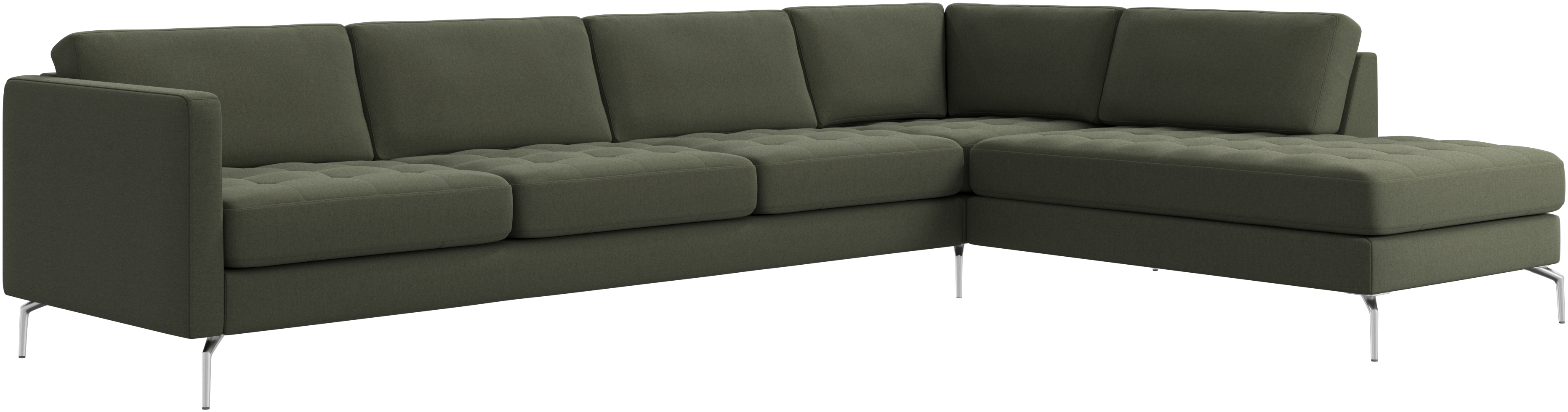 A light look and slim proportions make the Osaka sofa perfect for small homes, while a subtle feminine look and a touch of 60s design ensure that the Osaka sofa still packs a style punch. The beautiful tufted seats add visual softness and bring a classic look to your living room. The classic, straight armrests emphasise the clean lines and Scandinavian look. With plenty of room for the entire family this corner sofa will be the hero of your living room. The open end will create a dynamic, welcoming atmosphere - a true blessing for the integrated areas of open-plan living. Put your feet up, stretch out or use it as an extra seat – you won’t be sorry for choosing this comfortable chaise longue sofa.