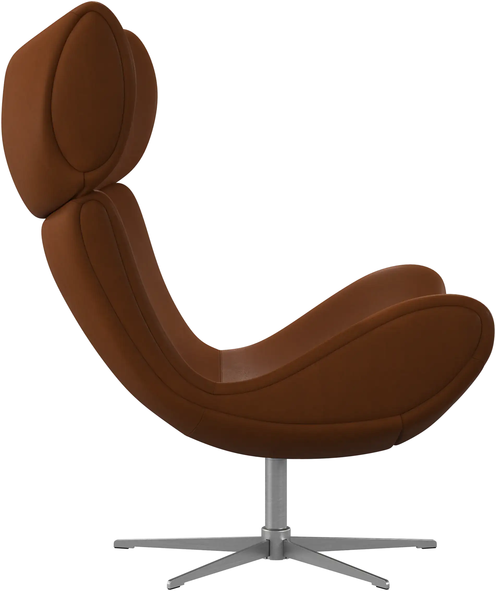 The strict organic shapes combined with the molded foam offer a unique and outstanding look. The high back gives the chair a voluminous look that underlines the uniqueness of the design while providing great head support.