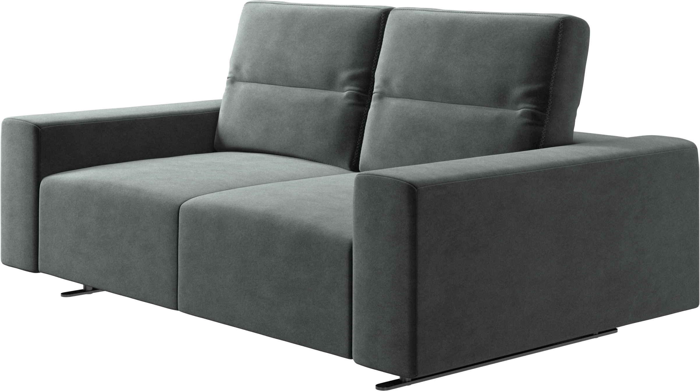 You find nice sewing details such as cross stitching on the back cushions. The leather version has more cuts and stitching than the fabric version, allowing for a different look depending on your choice of material.