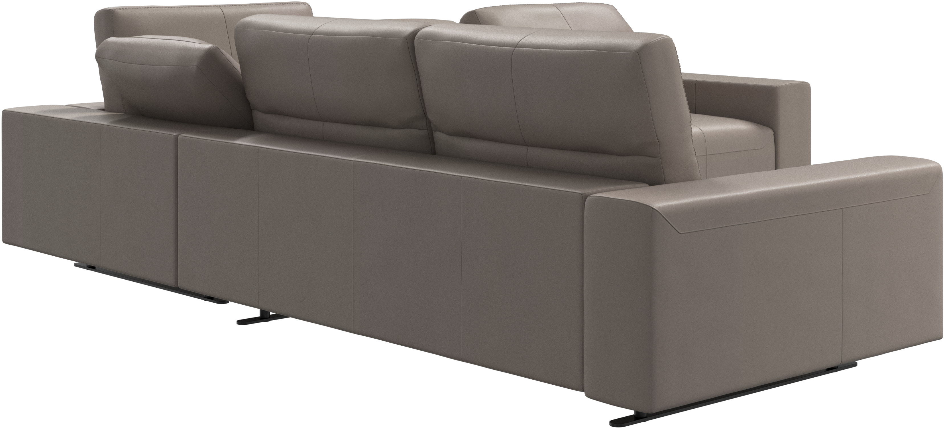 You find nice sewing details such as cross stitching on the back cushions. The leather version has more cuts and stitching than the fabric version, allowing for a different look depending on your choice of material.