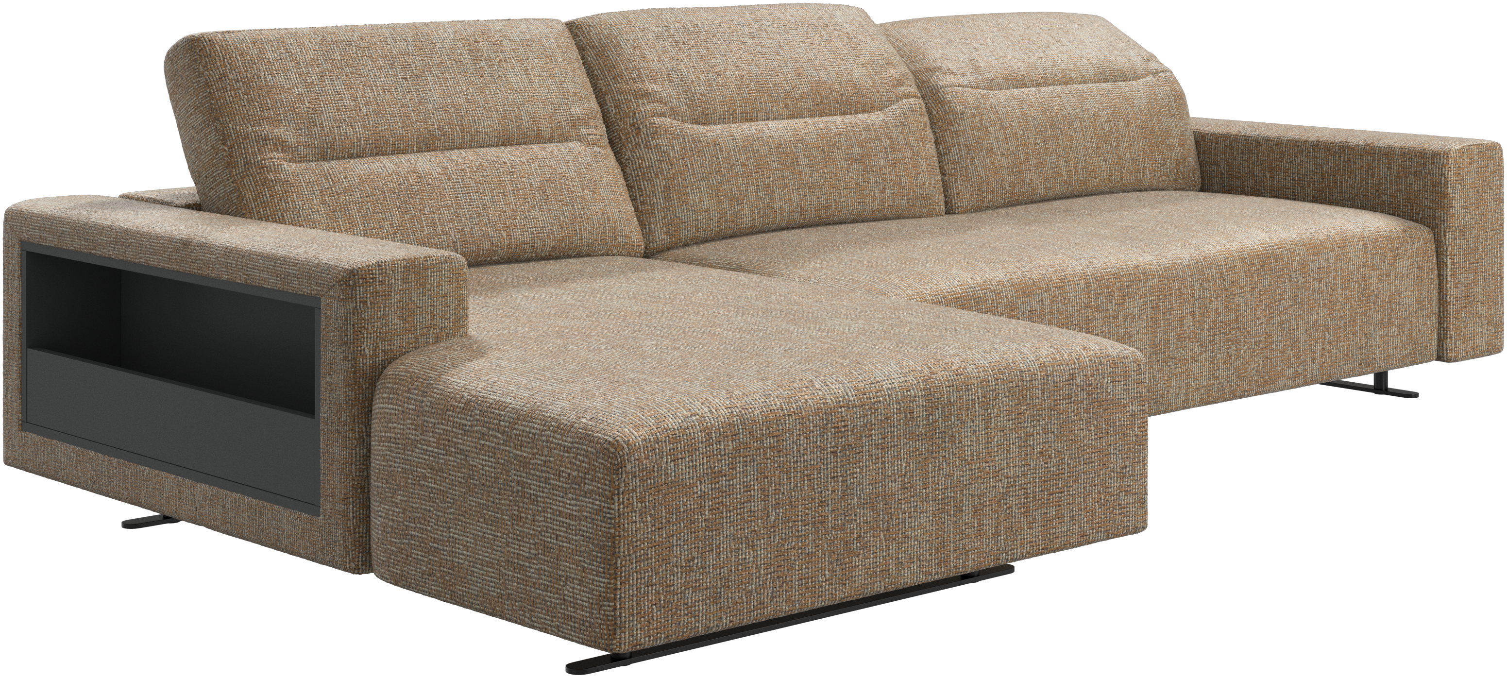 We know. It’s beautiful. But the modern Hampton sofa is much more than just good looks. A low base, a stunning loft look, adjustable backrests for comfort and visual impact – the Hampton sofa is the perfect personal retreat. Put your feet up, stretch out or use it as an extra seat – you won’t be sorry for choosing this comfortable chaise longue sofa. And with clever built-in storage in the armrest, you will always have your living room essentials at hand.