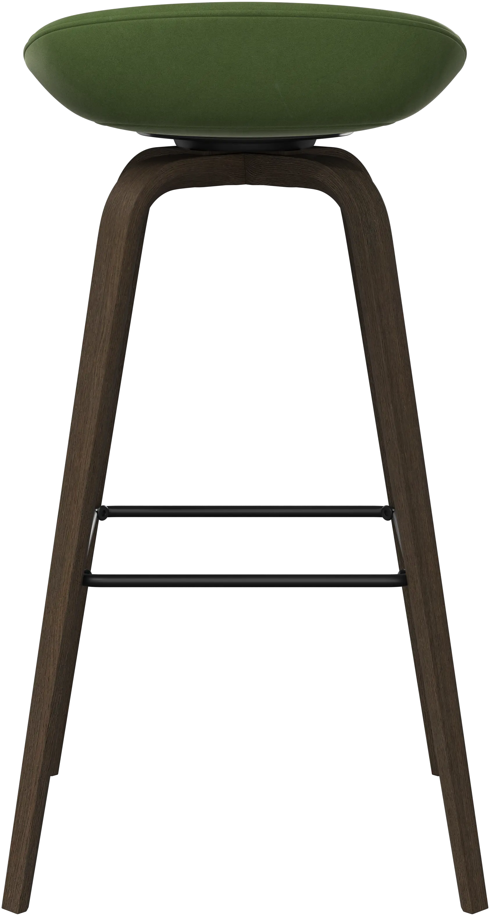The Hauge bar stool's soft, organic form is your stylish solution for elevated seating. It has a fixed height to fit your home bar or open kitchen space and a metal footrest for contemporary comfort.