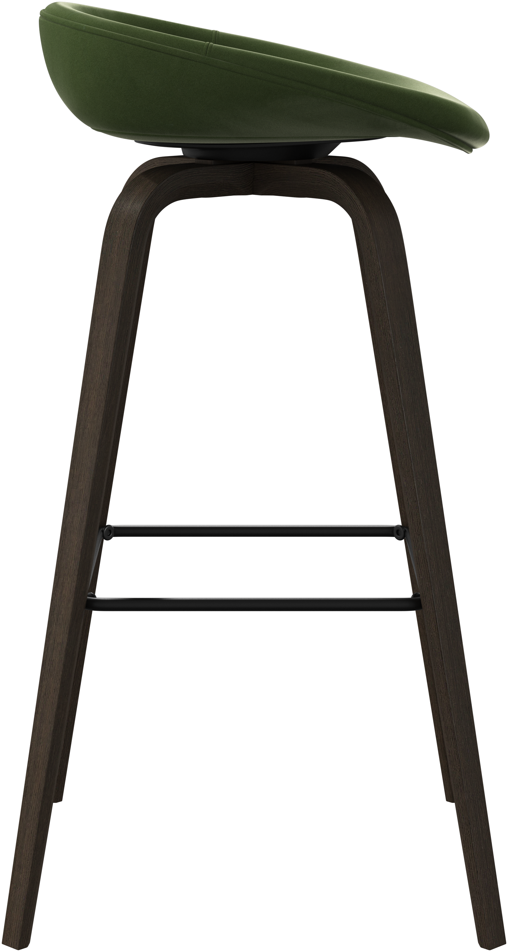 The Hauge bar stool's soft, organic form is your stylish solution for elevated seating. It has a fixed height to fit your home bar or open kitchen space and a metal footrest for contemporary comfort.