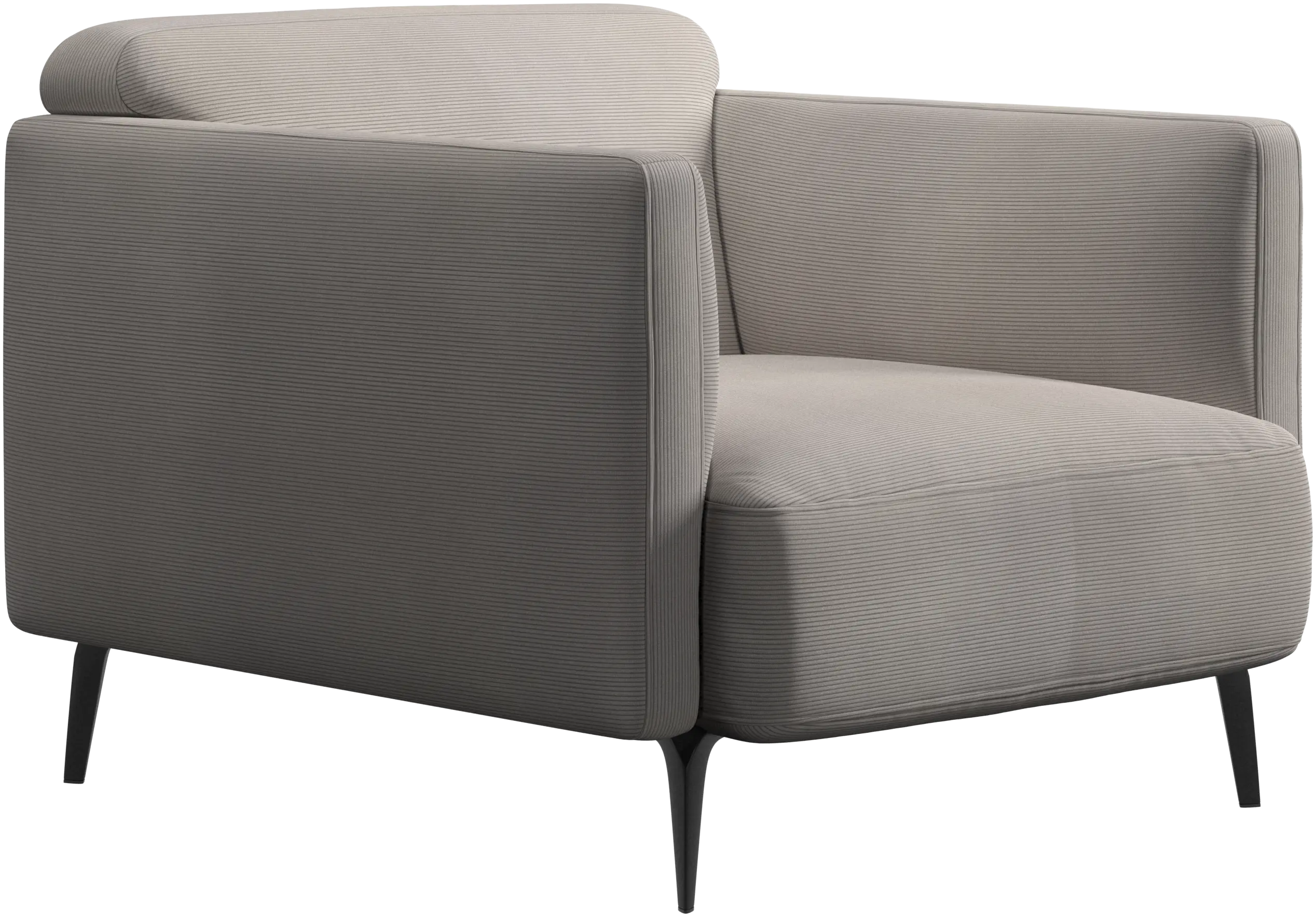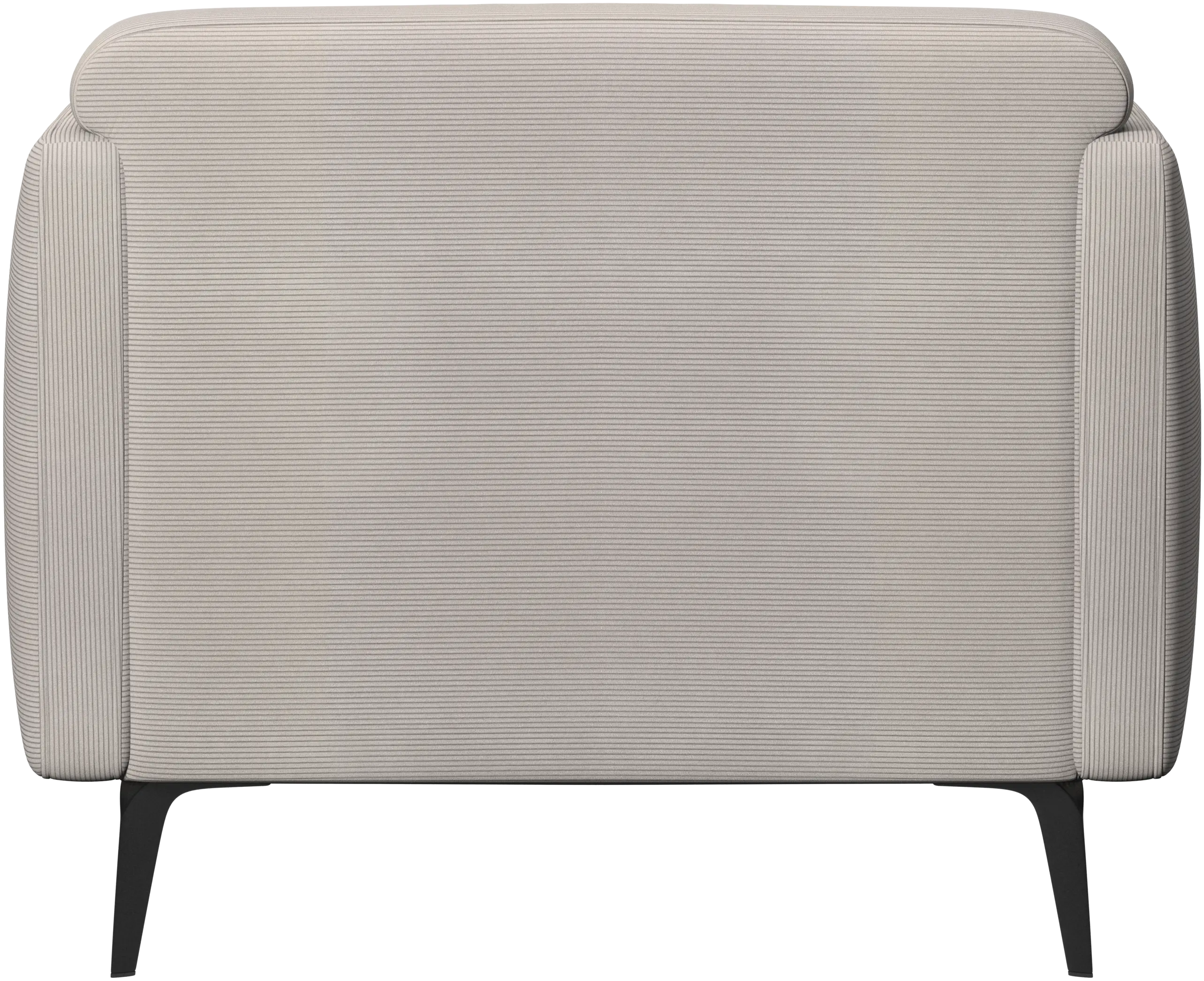Soft upholstered armrests and rounded edges, gives a lounge feeling underlined by the low back.