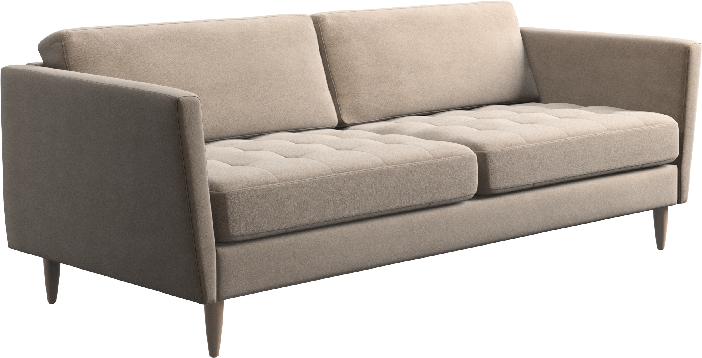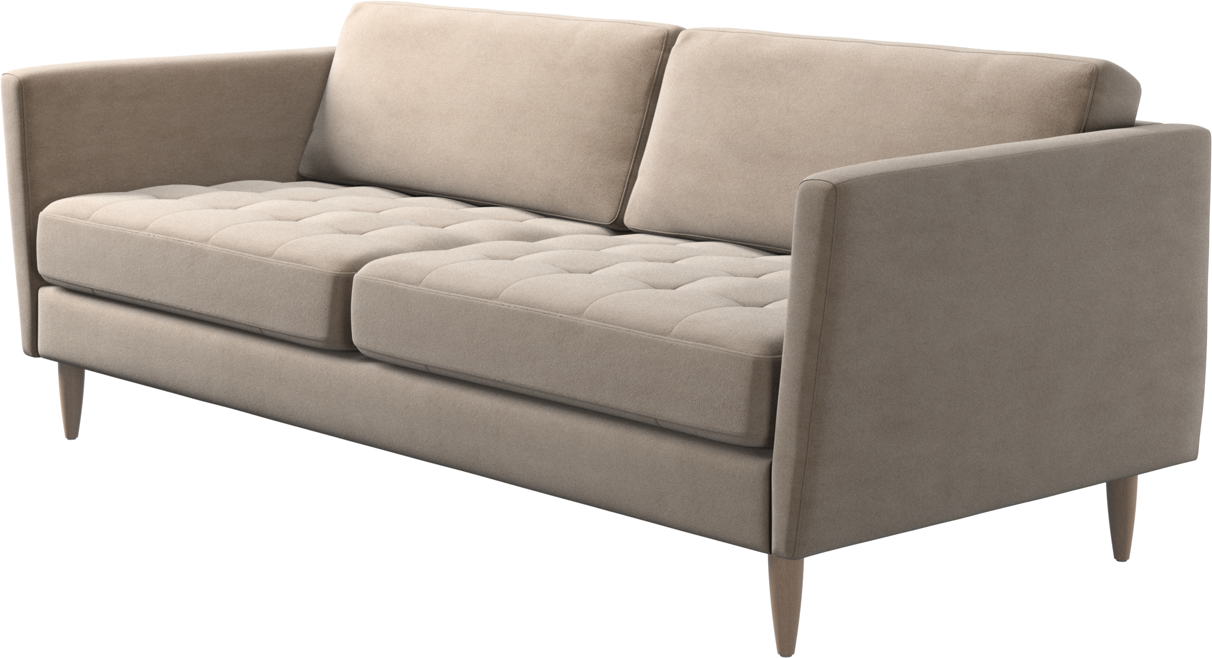 A light look and slim proportions make the Osaka sofa perfect for small homes, while a subtle feminine look and a touch of 60s design ensure that the Osaka sofa still packs a style punch. The beautiful tufted seats add visual softness and bring a classic look to your living room. Inclined armrests give the sofa a modern, unique look and open it up to the rest of the room. While keeping the 2 seater look, this comfortable 2.5 seater sofa has wider seats for extra comfort.