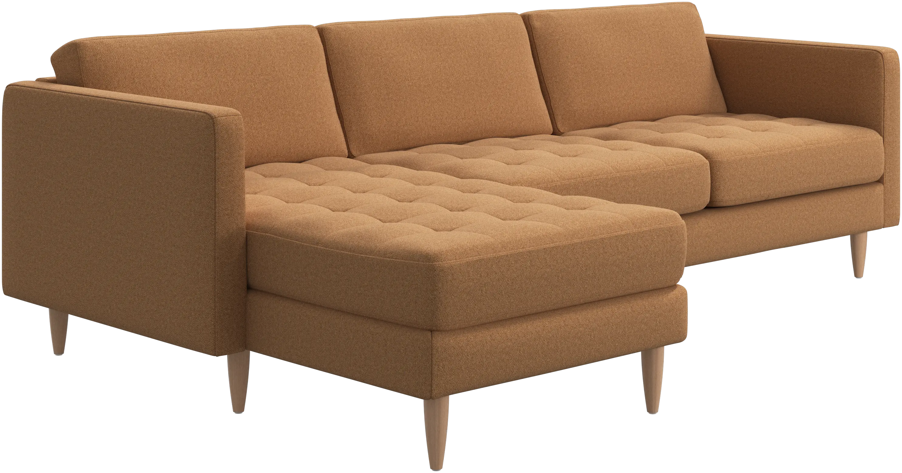 A light look and slim proportions make the Osaka sofa perfect for small homes, while a subtle feminine look and a touch of 60s design ensure that the Osaka sofa still packs a style punch. The beautiful tufted seats add visual softness and bring a classic look to your living room. The classic, straight armrests emphasise the clean lines and Scandinavian look. Put your feet up, stretch out or use it as an extra seat – you won’t be sorry for choosing this comfortable chaise longue sofa.