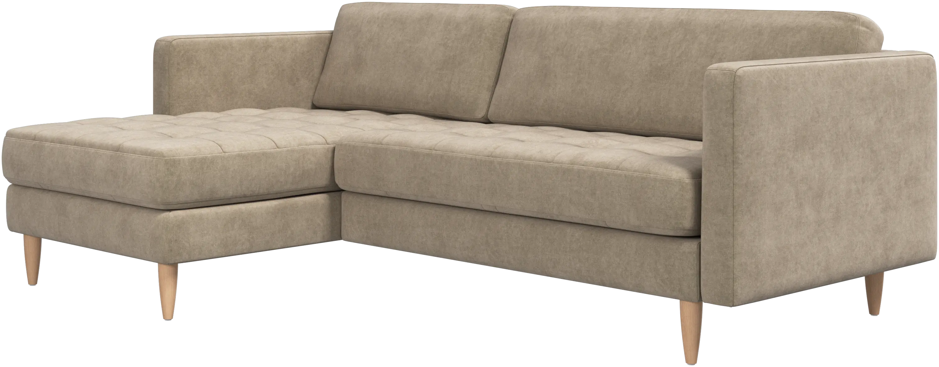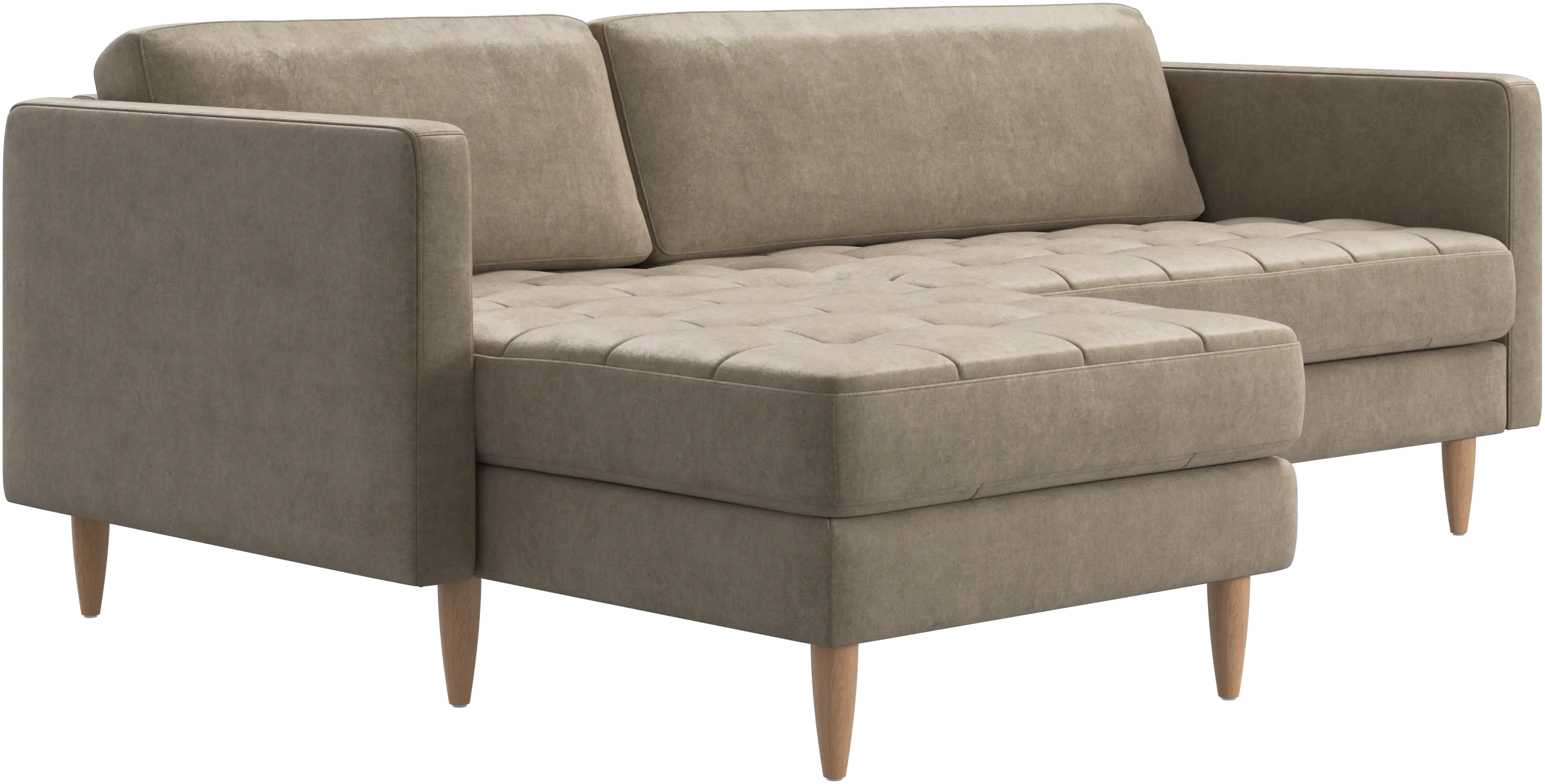 A light look and slim proportions make the Osaka sofa perfect for small homes, while a subtle feminine look and a touch of 60s design ensure that the Osaka sofa still packs a style punch. The beautiful tufted seats add visual softness and bring a classic look to your living room. The classic, straight armrests emphasise the clean lines and Scandinavian look. Put your feet up, stretch out or use it as an extra seat – you won’t be sorry for choosing this comfortable chaise longue sofa.