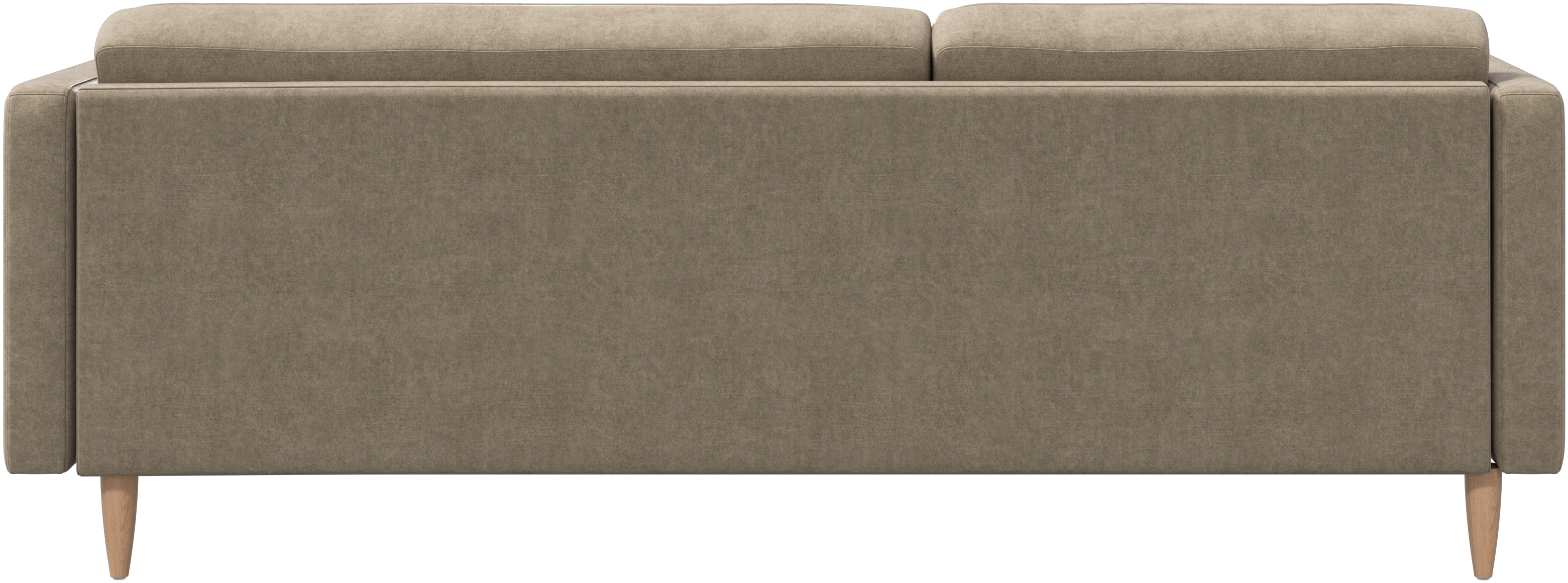 The seat cushions are attached with Velcro preventing the cushions from sliding as well as the ends flipping up when seated in the middle. A small but important detail that ensures a neat look and allows for easy vacuum cleaning underneath.