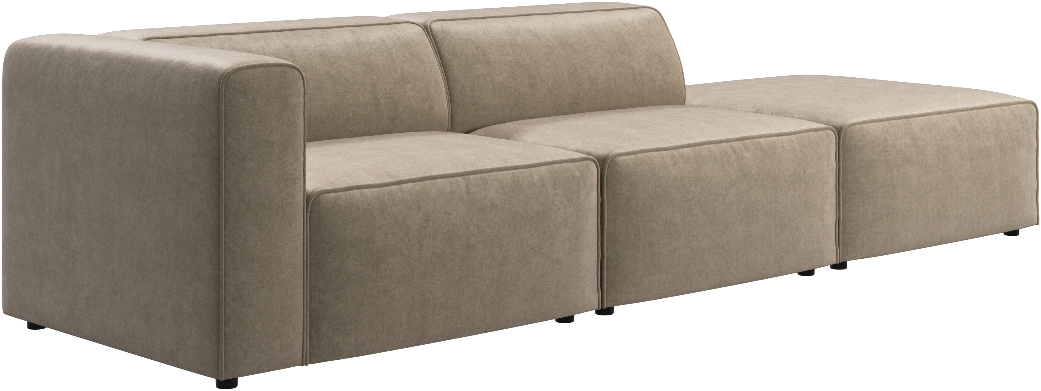 Carmo is a modular sofa system that can be bought as single modules. When doing so, the modules come fully upholstered with crocodile connectors ensuring easy attachment and detachment.