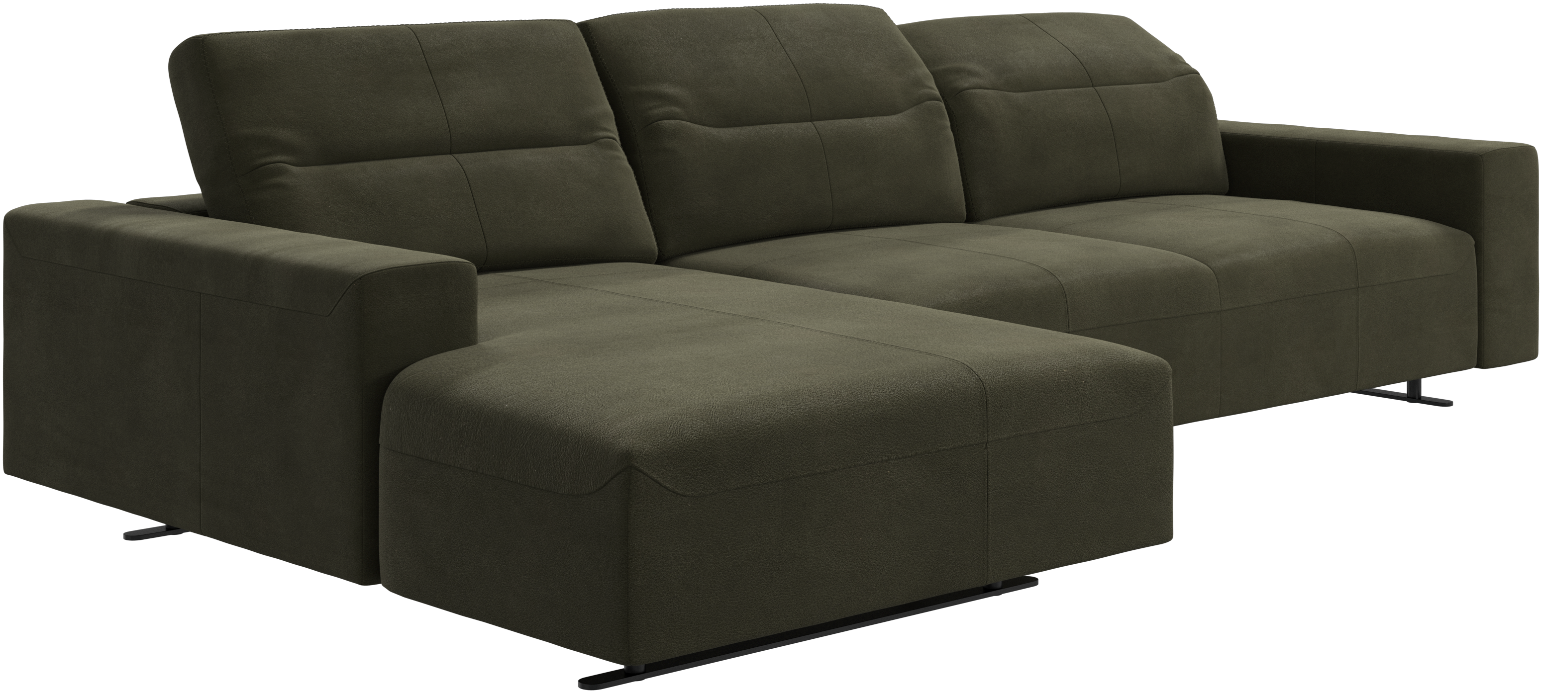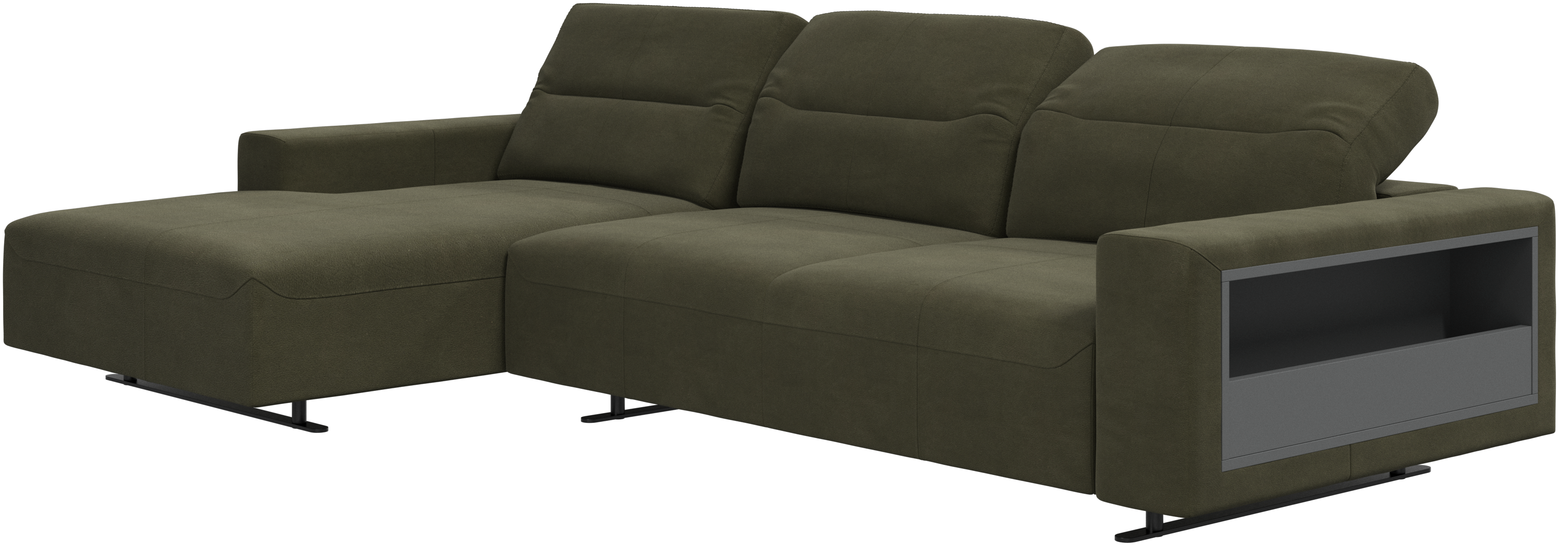 We know. It’s beautiful. But the modern Hampton sofa is much more than just good looks. A low base, a stunning loft look, adjustable backrests for comfort and visual impact – the Hampton sofa is the perfect personal retreat. Put your feet up, stretch out or use it as an extra seat – you won’t be sorry for choosing this comfortable chaise longue sofa. And with clever built-in storage in the armrest, you will always have your living room essentials at hand.