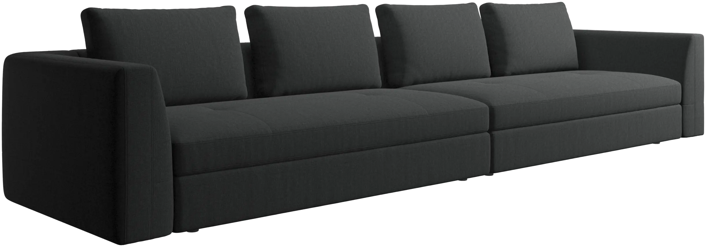 The Bergamo sofa is crafted with low, discrete legs that create a light, 'floating’ look.