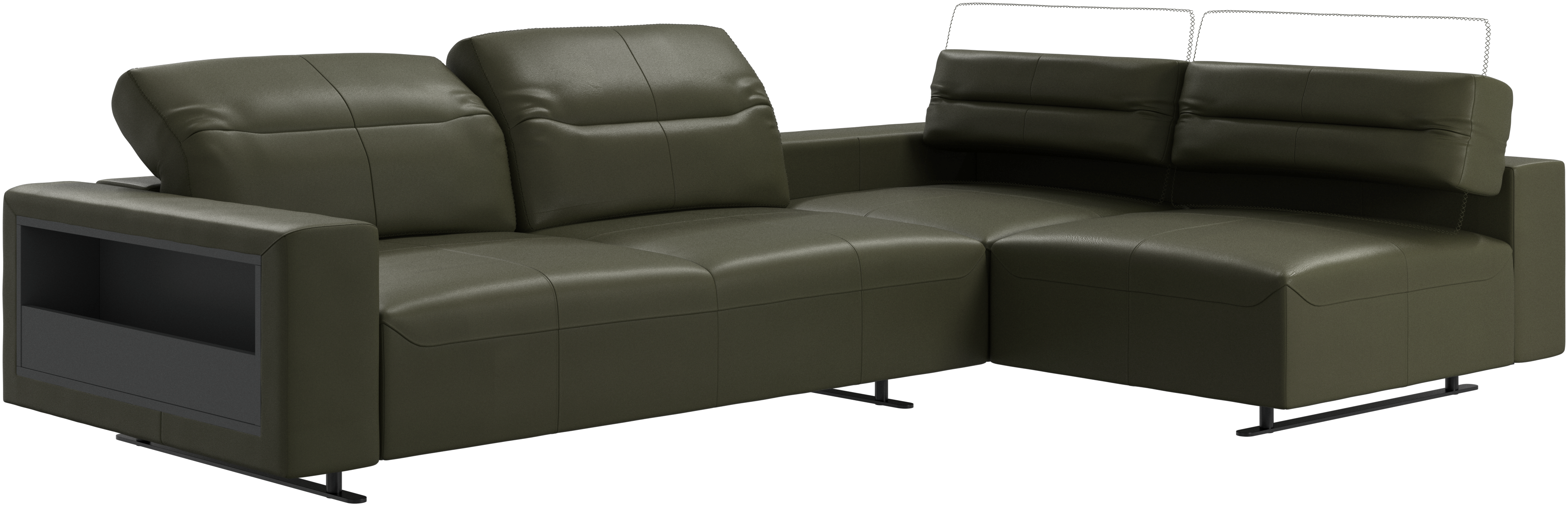Hampton corner sofa with adjustable back and storage on left side