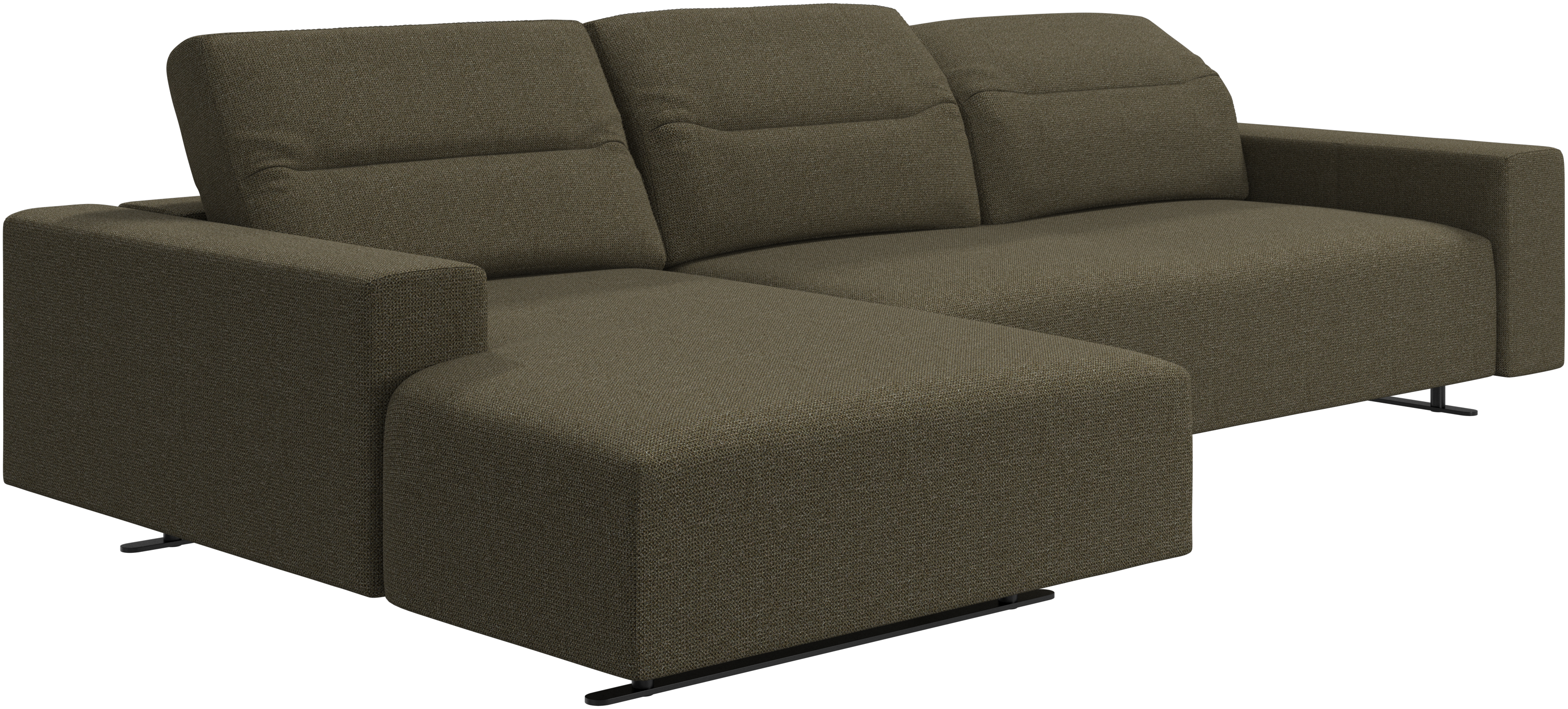 We know. It’s beautiful. But the modern Hampton sofa is much more than just good looks. A low base, a stunning loft look, adjustable backrests for comfort and visual impact – the Hampton sofa is the perfect personal retreat. Put your feet up, stretch out or use it as an extra seat – you won’t be sorry for choosing this comfortable chaise longue sofa. And with clever built-in storage in the armrest, you will always have your living room essentials at hand.