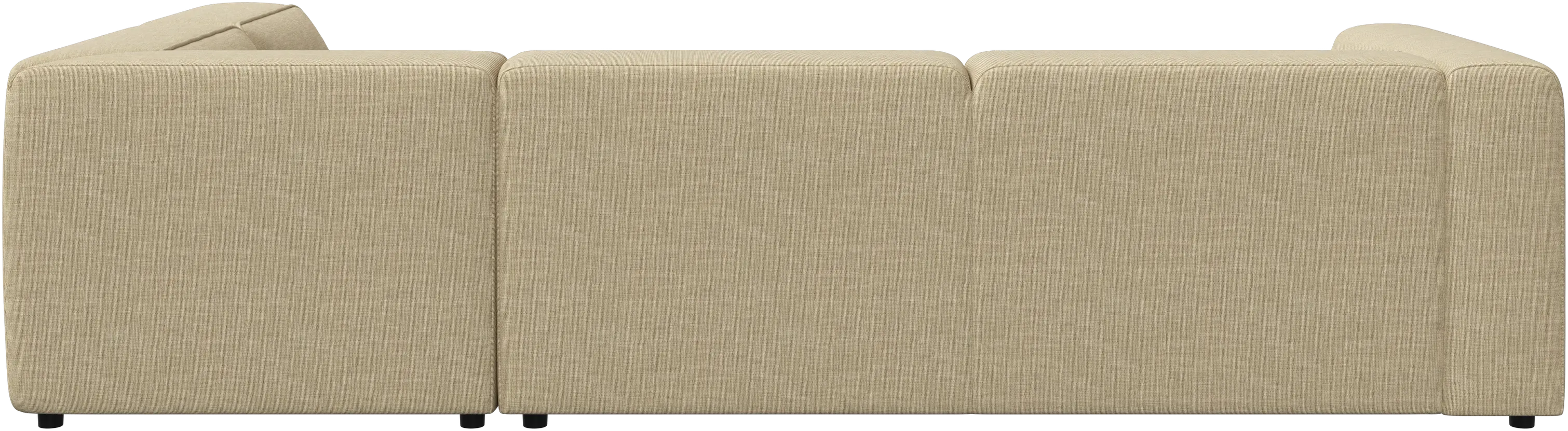 The low comfortable back has the same height as the armrest giving a fantastic seating comfort, especially in the corner.