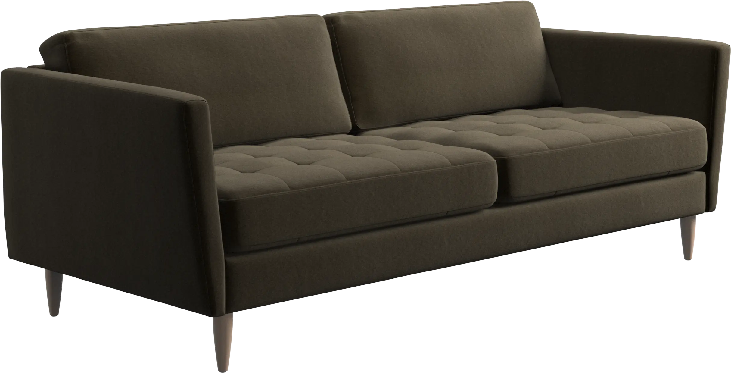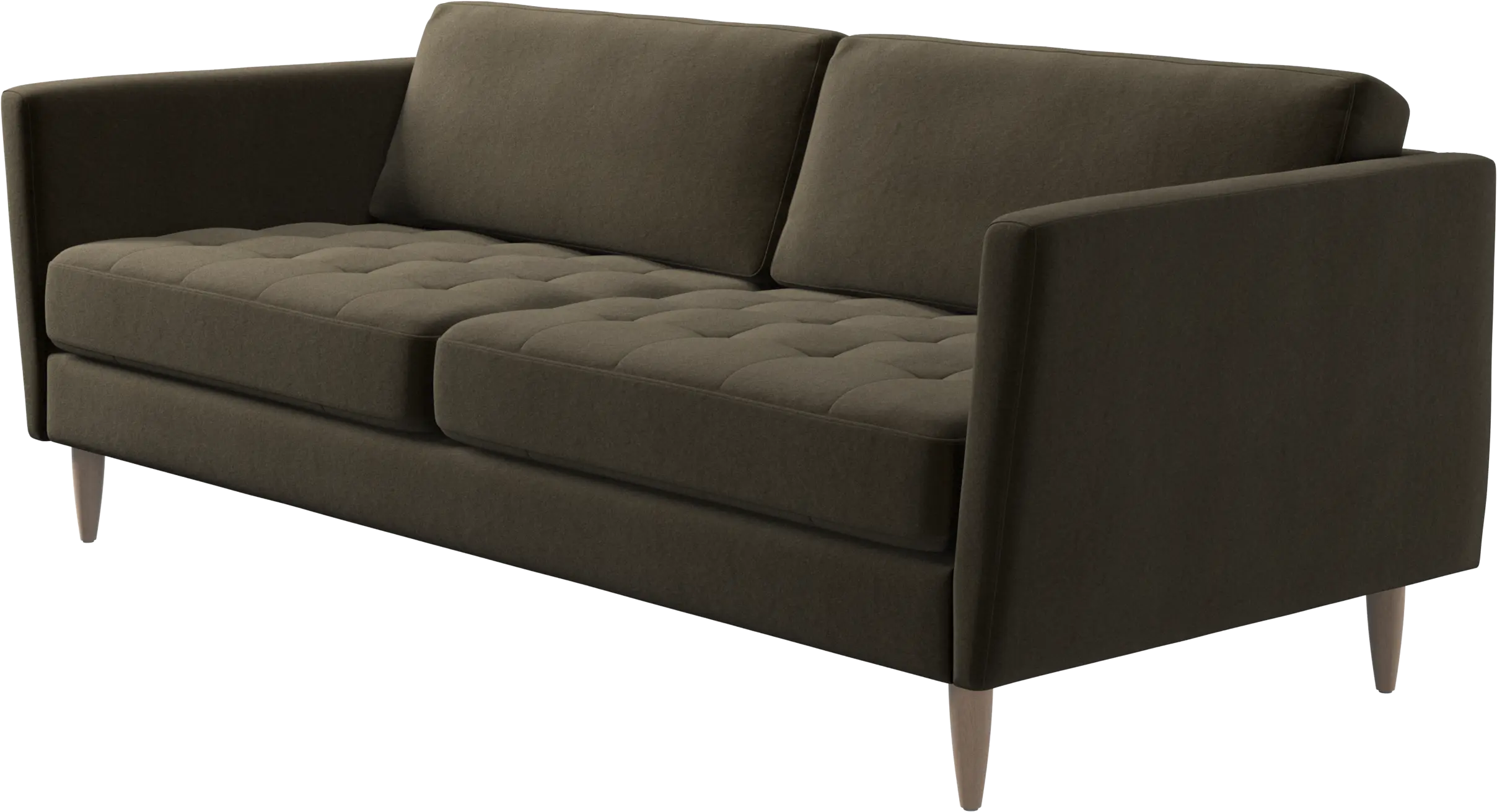 A light look and slim proportions make the Osaka sofa perfect for small homes, while a subtle feminine look and a touch of 60s design ensure that the Osaka sofa still packs a style punch. The beautiful tufted seats add visual softness and bring a classic look to your living room. Inclined armrests give the sofa a modern, unique look and open it up to the rest of the room. While keeping the 2 seater look, this comfortable 2.5 seater sofa has wider seats for extra comfort.