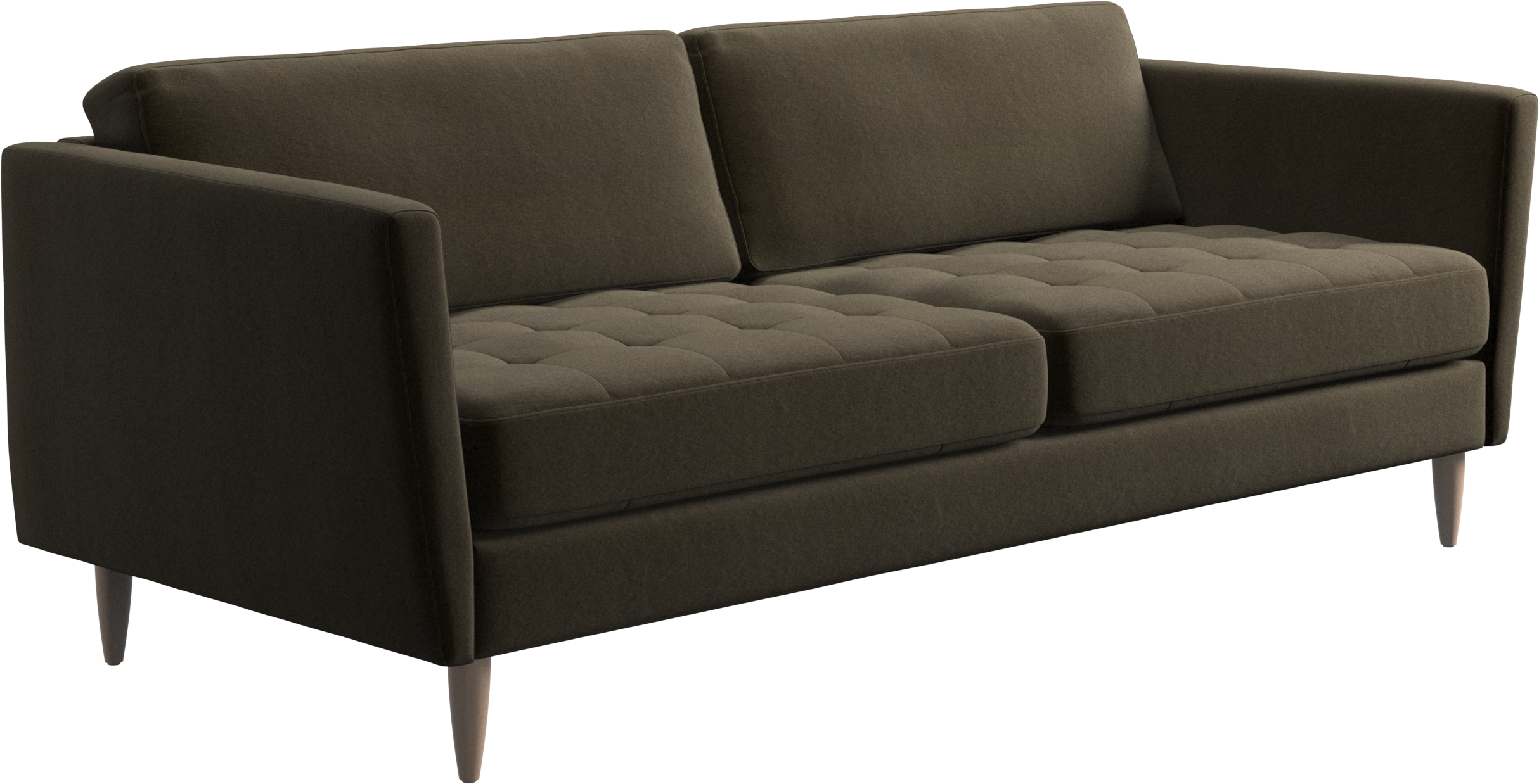 A light look and slim proportions make the Osaka sofa perfect for small homes, while a subtle feminine look and a touch of 60s design ensure that the Osaka sofa still packs a style punch. The beautiful tufted seats add visual softness and bring a classic look to your living room. Inclined armrests give the sofa a modern, unique look and open it up to the rest of the room. While keeping the 2 seater look, this comfortable 2.5 seater sofa has wider seats for extra comfort.