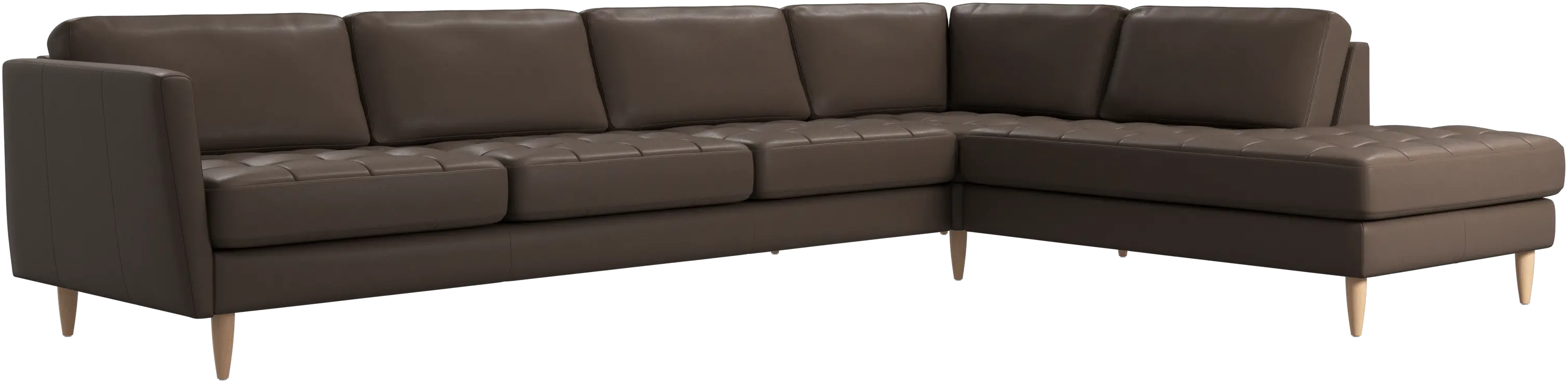 A light look and slim proportions make the Osaka sofa perfect for small homes, while a subtle feminine look and a touch of 60s design ensure that the Osaka sofa still packs a style punch. The beautiful tufted seats add visual softness and bring a classic look to your living room. Inclined armrests give the sofa a modern, unique look and open it up to the rest of the room. With plenty of room for the entire family this corner sofa will be the hero of your living room. The open end will create a dynamic, welcoming atmosphere - a true blessing for the integrated areas of open-plan living. Put your feet up, stretch out or use it as an extra seat – you won’t be sorry for choosing this comfortable chaise longue sofa.