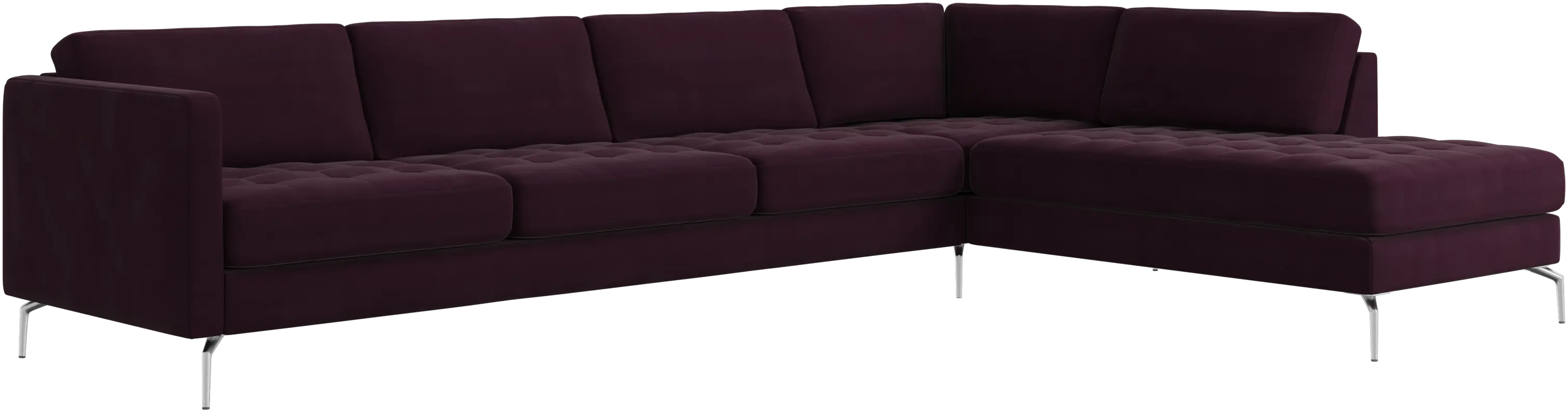 A light look and slim proportions make the Osaka sofa perfect for small homes, while a subtle feminine look and a touch of 60s design ensure that the Osaka sofa still packs a style punch. The beautiful tufted seats add visual softness and bring a classic look to your living room. The classic, straight armrests emphasise the clean lines and Scandinavian look. With plenty of room for the entire family this corner sofa will be the hero of your living room. The open end will create a dynamic, welcoming atmosphere - a true blessing for the integrated areas of open-plan living. Put your feet up, stretch out or use it as an extra seat – you won’t be sorry for choosing this comfortable chaise longue sofa.