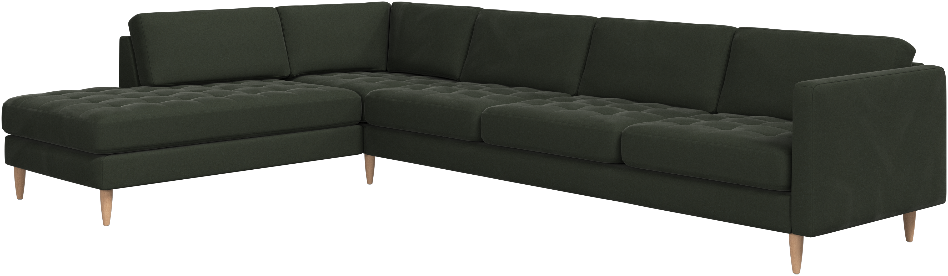 A light look and slim proportions make the Osaka sofa perfect for small homes, while a subtle feminine look and a touch of 60s design ensure that the Osaka sofa still packs a style punch. The beautiful tufted seats add visual softness and bring a classic look to your living room. The classic, straight armrests emphasise the clean lines and Scandinavian look. With plenty of room for the entire family this corner sofa will be the hero of your living room. The open end will create a dynamic, welcoming atmosphere - a true blessing for the integrated areas of open-plan living. Put your feet up, stretch out or use it as an extra seat – you won’t be sorry for choosing this comfortable chaise longue sofa.