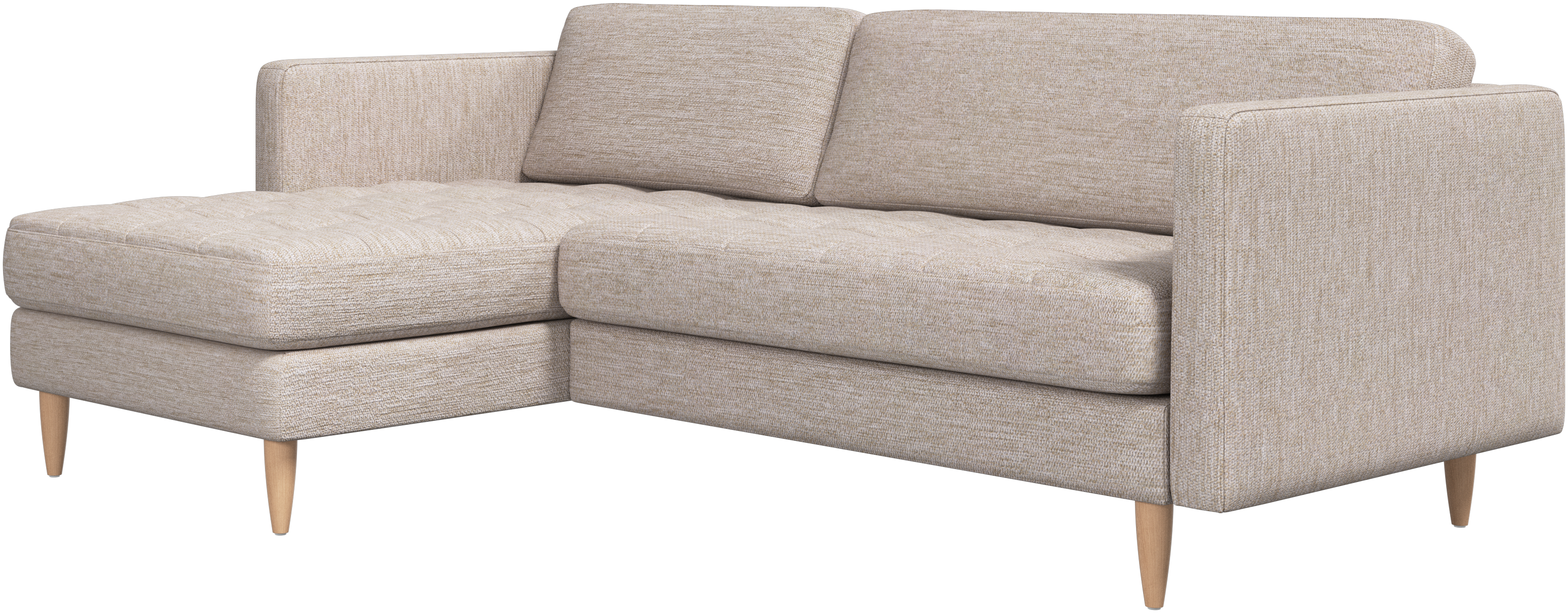 A light look and slim proportions make the Osaka sofa perfect for small homes, while a subtle feminine look and a touch of 60s design ensure that the Osaka sofa still packs a style punch. The beautiful tufted seats add visual softness and bring a classic look to your living room. The classic, straight armrests emphasise the clean lines and Scandinavian look. Put your feet up, stretch out or use it as an extra seat – you won’t be sorry for choosing this comfortable chaise longue sofa.