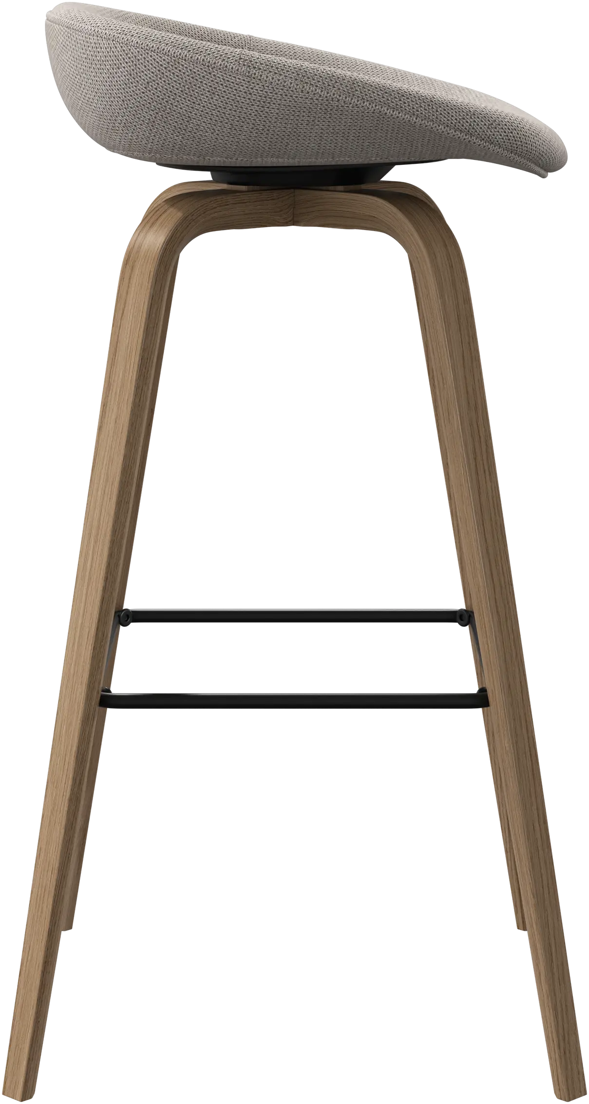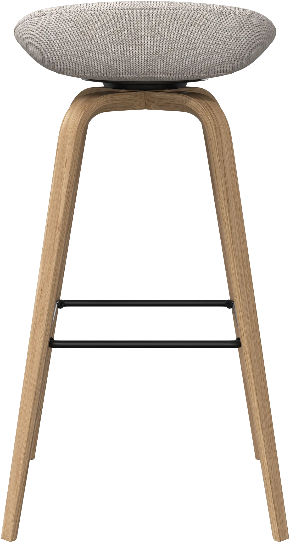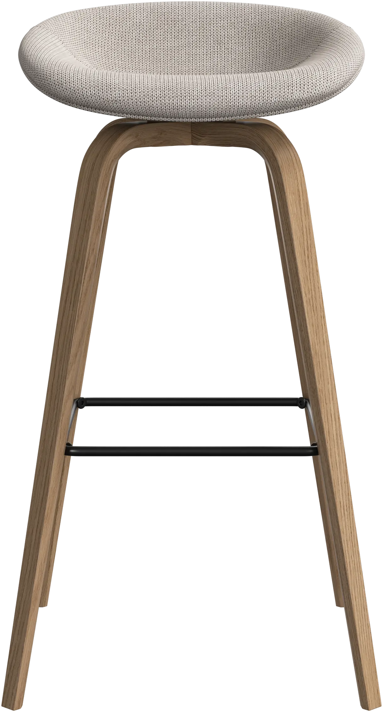 Con una forma suave y orgánica, el taburete de bar Hauge es tu solución elegante para un asiento más elevado. Tiene una altura fija para adaptarse a tu bar o espacio de cocina abierto y un reposapiés metálico que ofrece un confort contemporáneo.