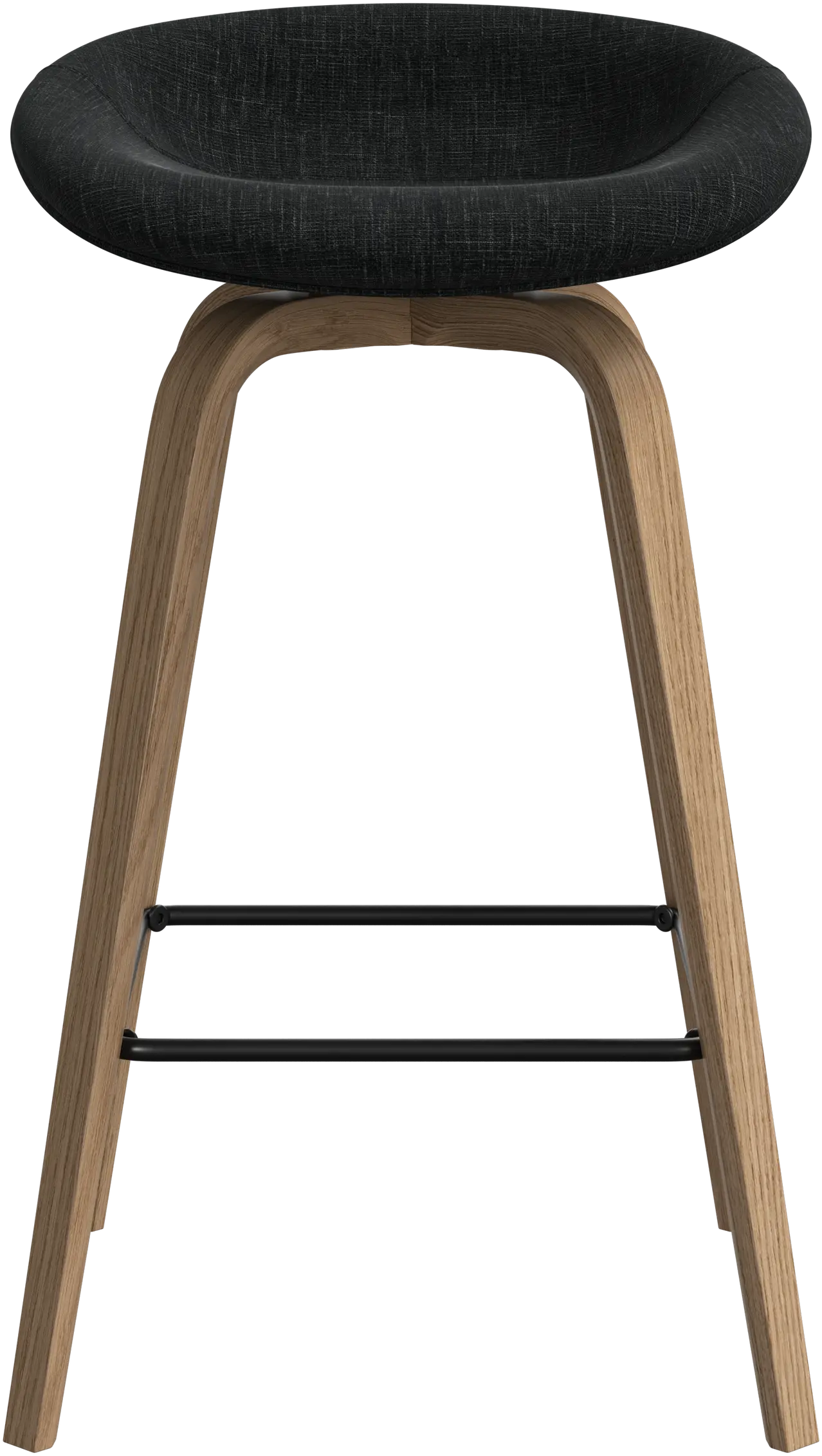 Con una forma suave y orgánica, el taburete de bar Hauge es tu solución elegante para un asiento más elevado. Tiene una altura fija para adaptarse a tu bar o espacio de cocina abierto y un reposapiés metálico que ofrece un confort contemporáneo.