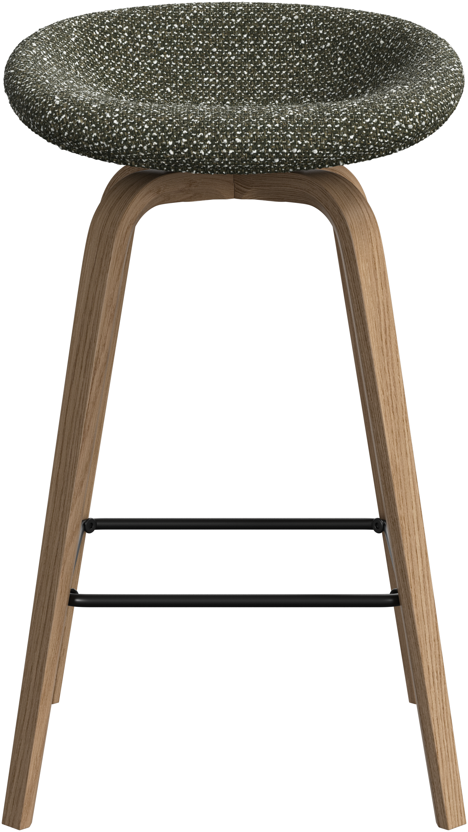 Con una forma suave y orgánica, el taburete de bar Hauge es tu solución elegante para un asiento más elevado. Tiene una altura fija para adaptarse a tu bar o espacio de cocina abierto y un reposapiés metálico que ofrece un confort contemporáneo.