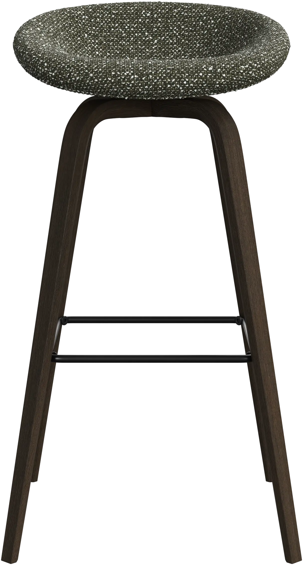 Con una forma suave y orgánica, el taburete de bar Hauge es tu solución elegante para un asiento más elevado. Tiene una altura fija para adaptarse a tu bar o espacio de cocina abierto y un reposapiés metálico que ofrece un confort contemporáneo.