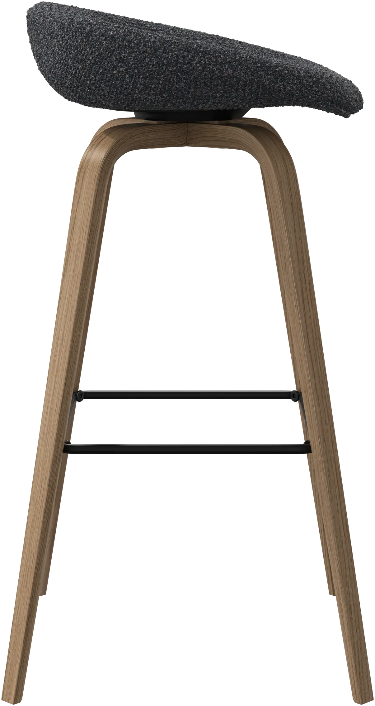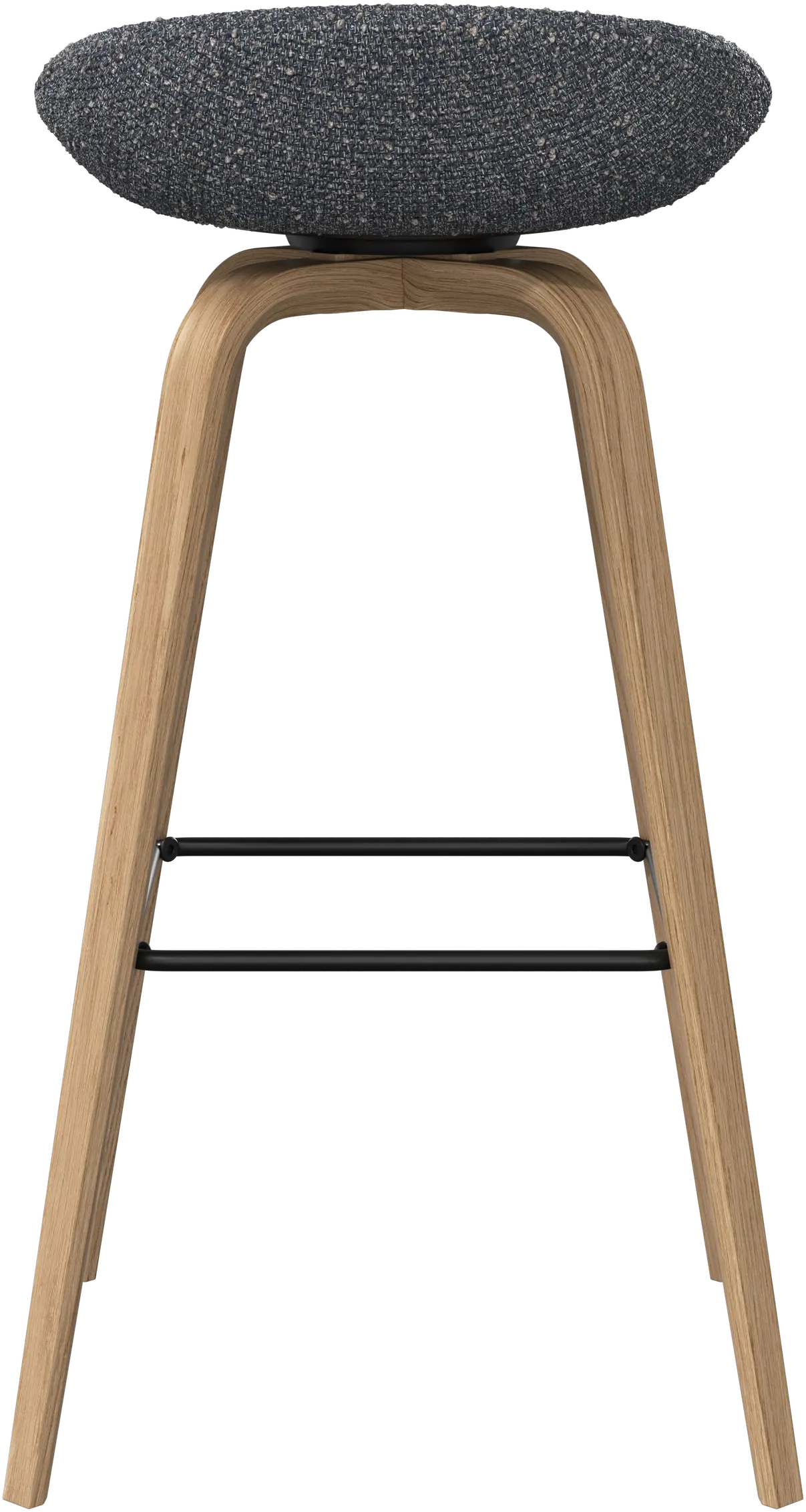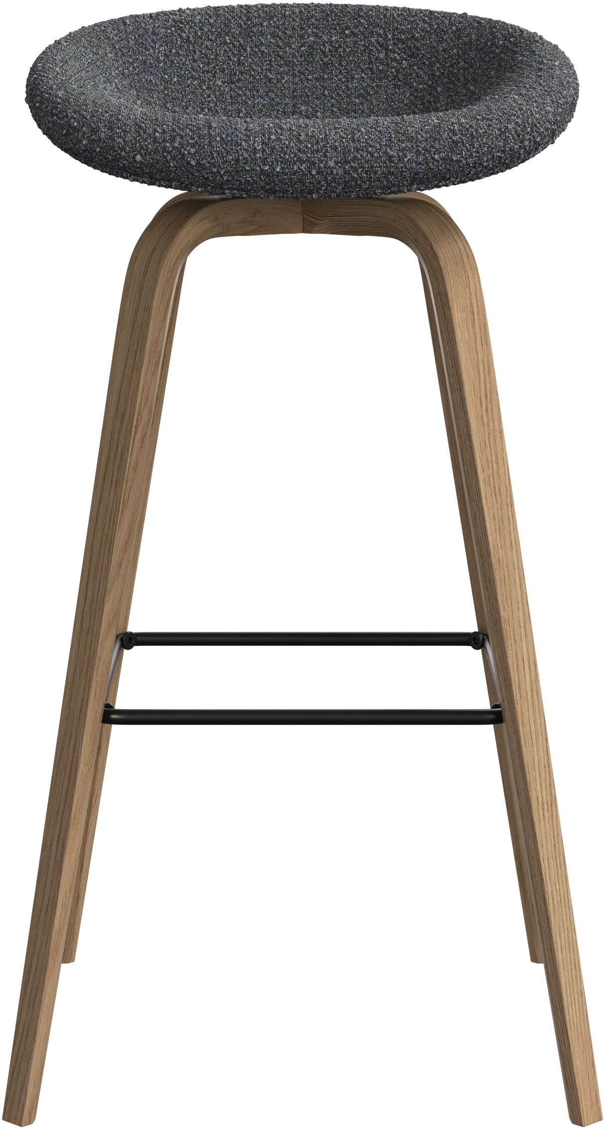 Con una forma suave y orgánica, el taburete de bar Hauge es tu solución elegante para un asiento más elevado. Tiene una altura fija para adaptarse a tu bar o espacio de cocina abierto y un reposapiés metálico que ofrece un confort contemporáneo.