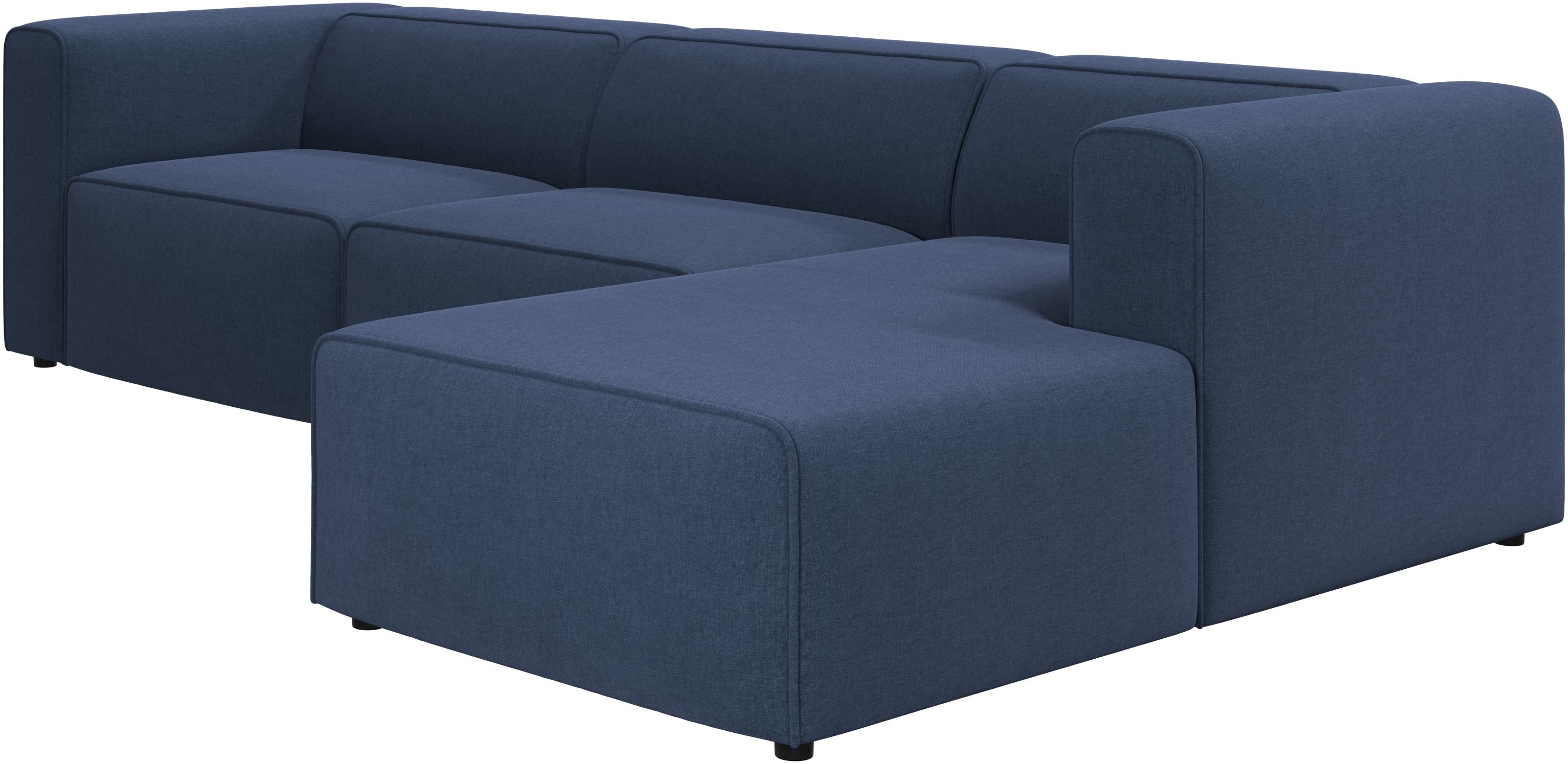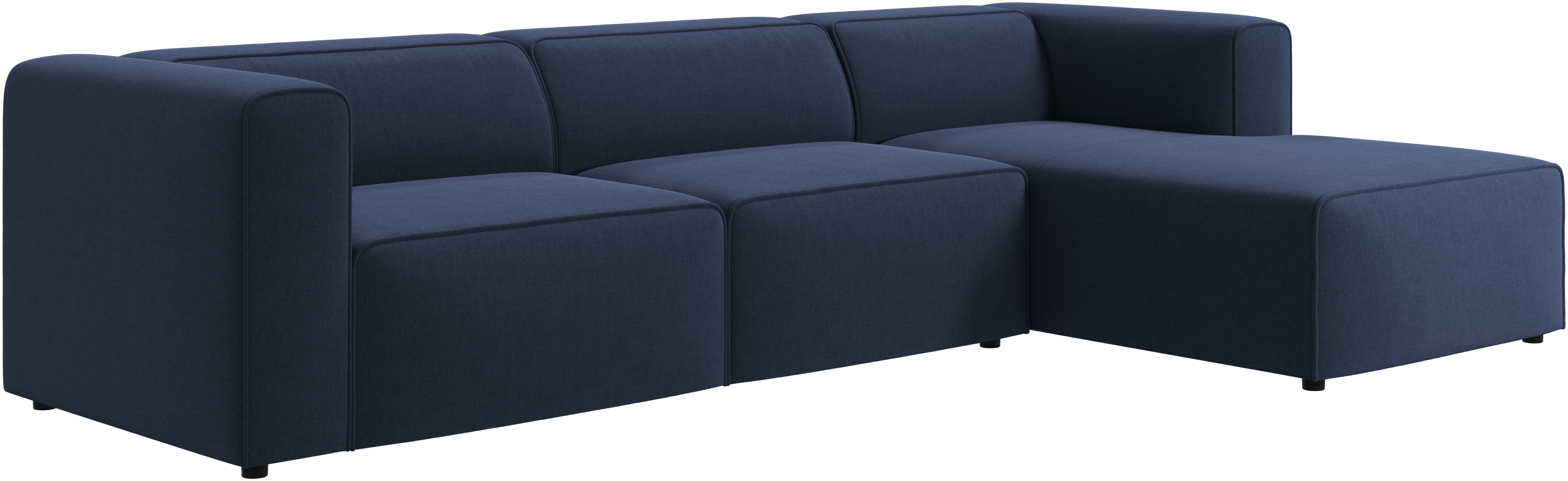 Las patas, con una altura de tan sólo 5 cm, parecen invisibles y el sofá da la impresión de estar casi flotando. Este juego óptico aporta ligereza visual al diseño.