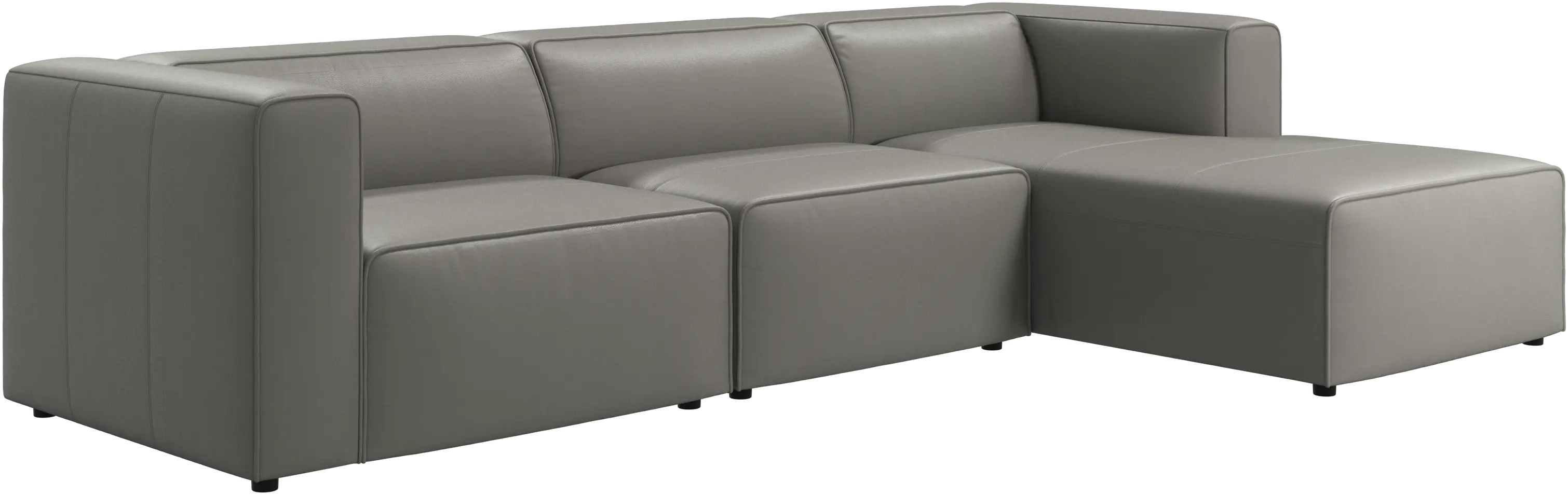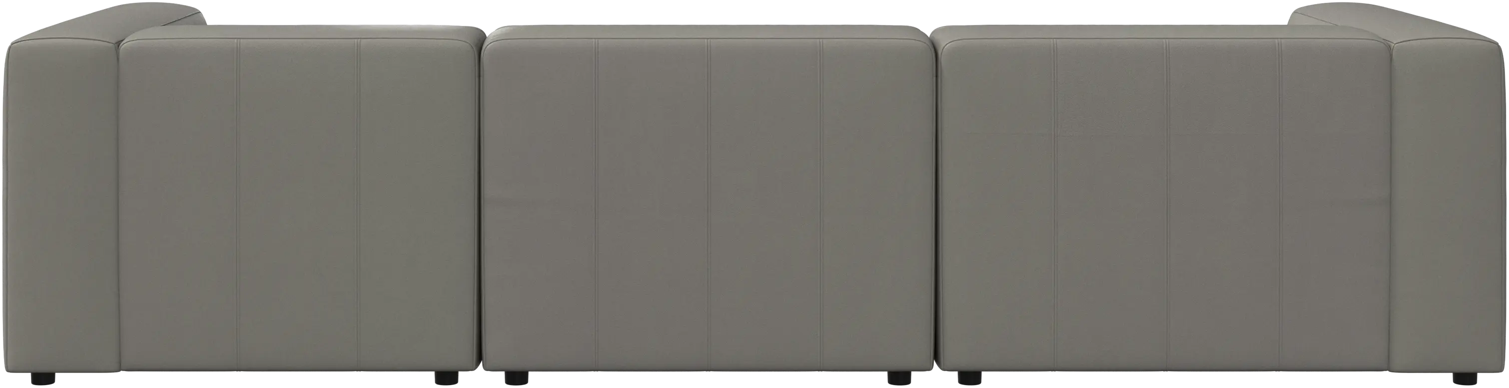 Las patas, con una altura de tan sólo 5 cm, parecen invisibles y el sofá da la impresión de estar casi flotando. Este juego óptico aporta ligereza visual al diseño.