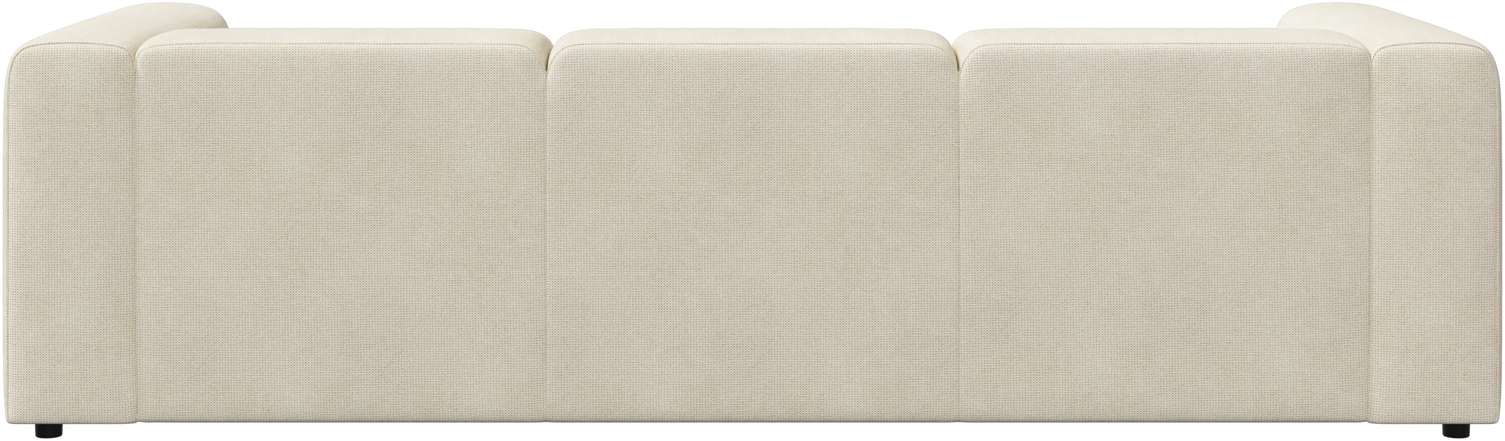 Las patas, con una altura de tan sólo 5 cm, parecen invisibles y el sofá da la impresión de estar casi flotando. Este juego óptico aporta ligereza visual al diseño.