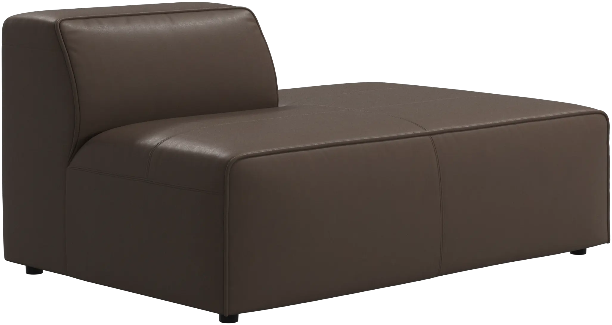 Las patas, con una altura de tan sólo 5 cm, parecen invisibles y el sofá da la impresión de estar casi flotando. Este juego óptico aporta ligereza visual al diseño.