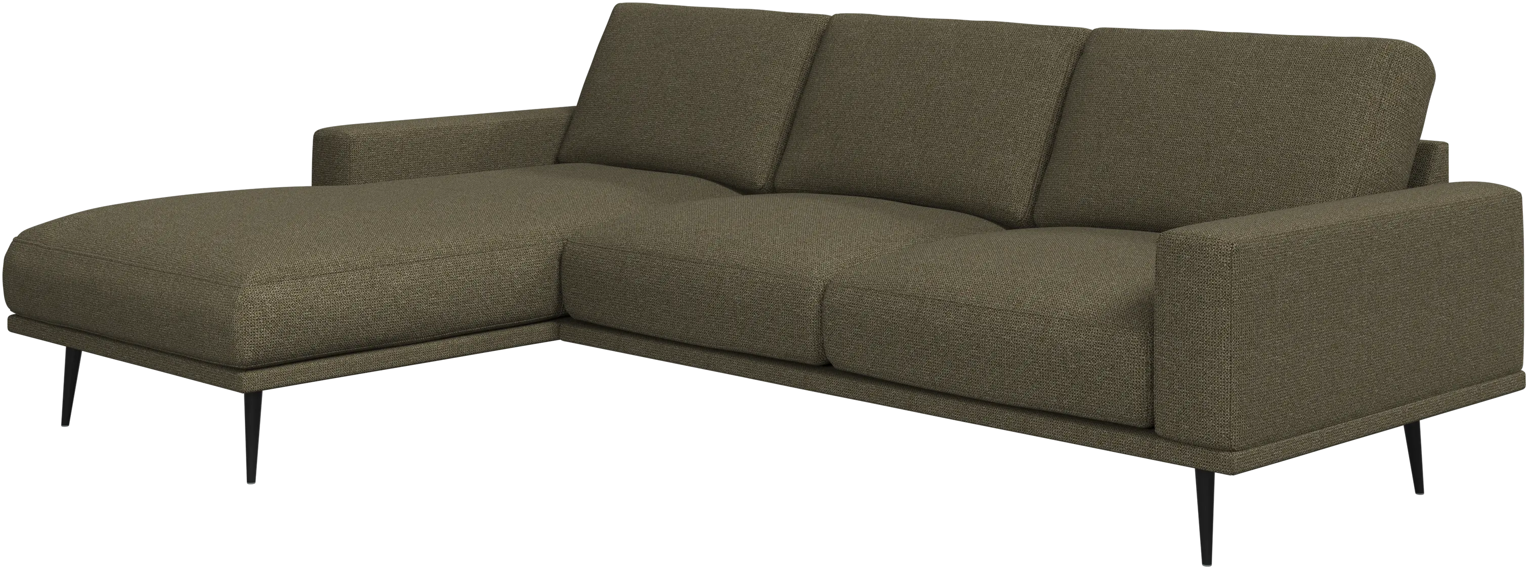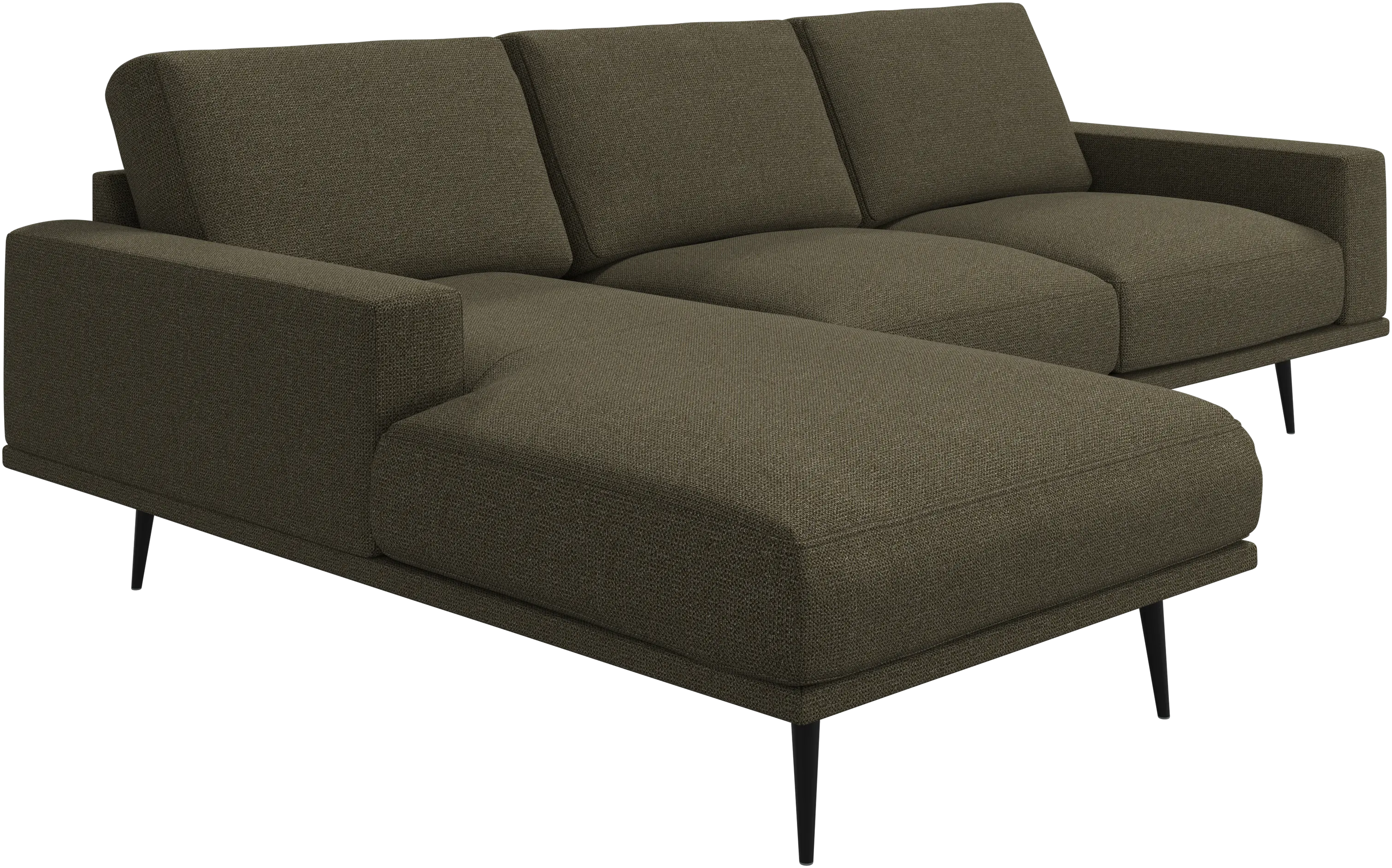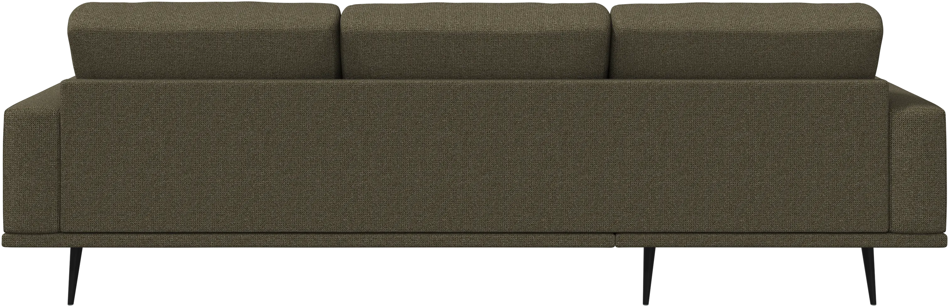 El sólido armazón del sofá Carlton le presta una estructura durable y esbelta que realza el look horizontal.