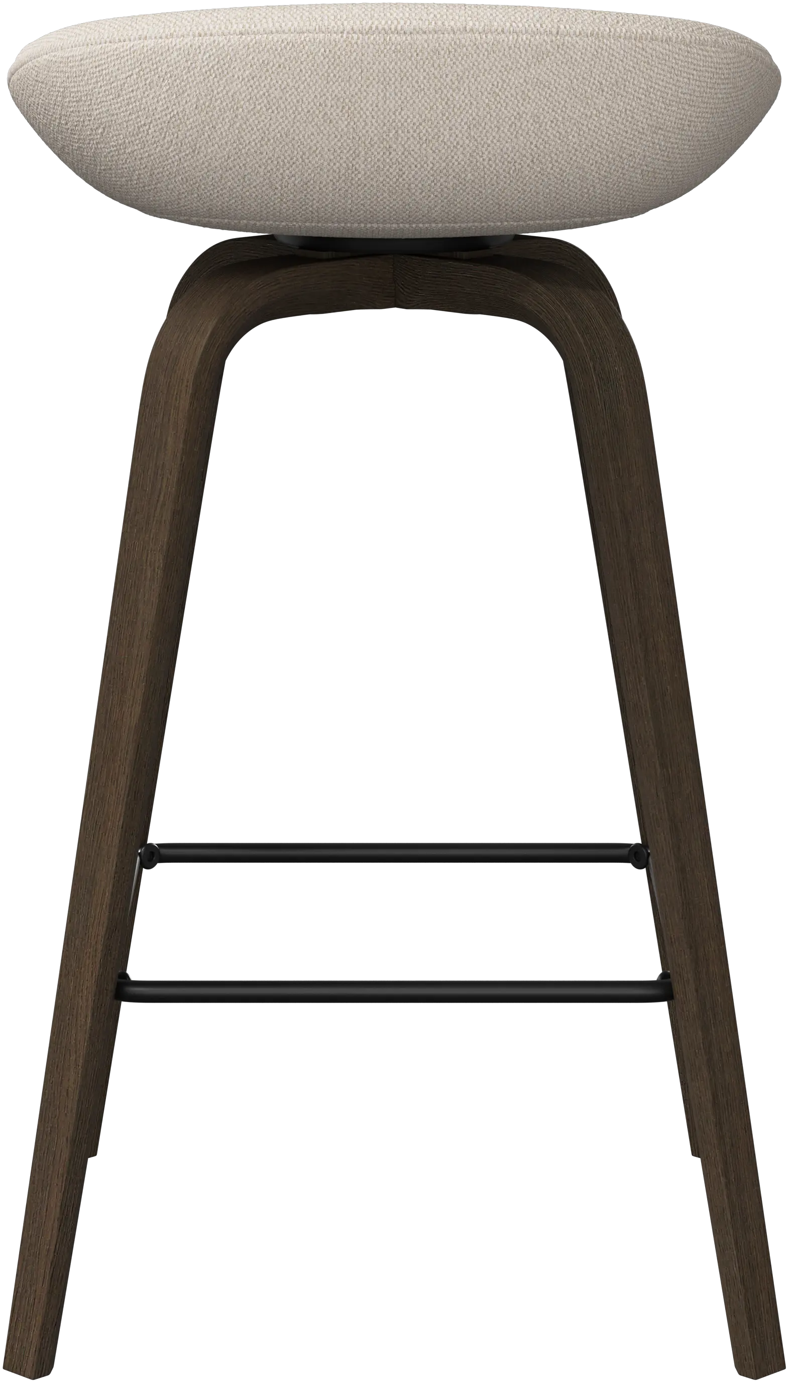 Con una forma suave y orgánica, el taburete de bar Hauge es tu solución elegante para un asiento más elevado. Tiene una altura fija para adaptarse a tu bar o espacio de cocina abierto y un reposapiés metálico que ofrece un confort contemporáneo.