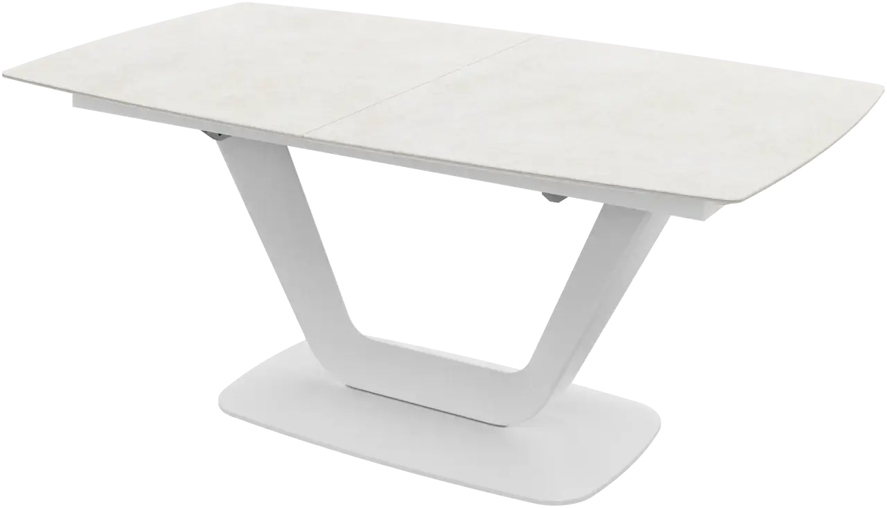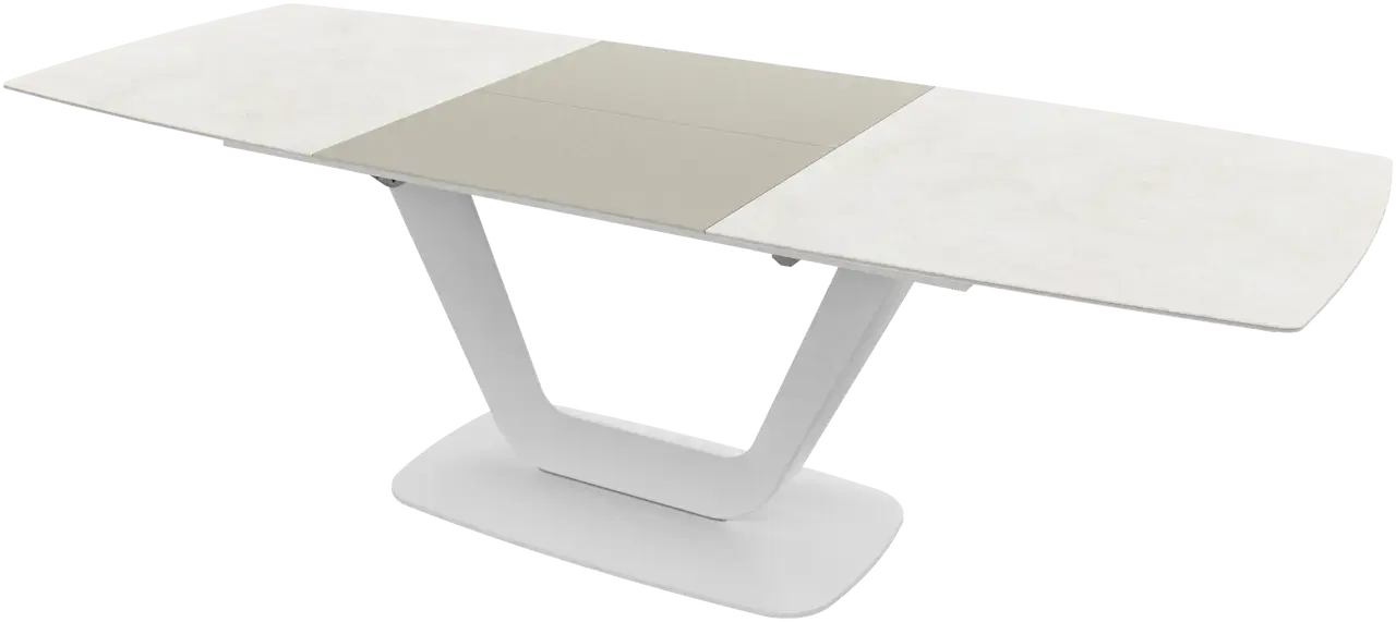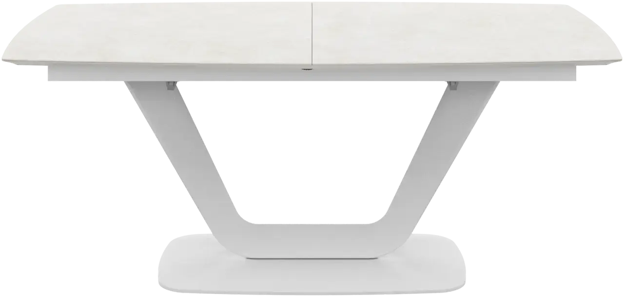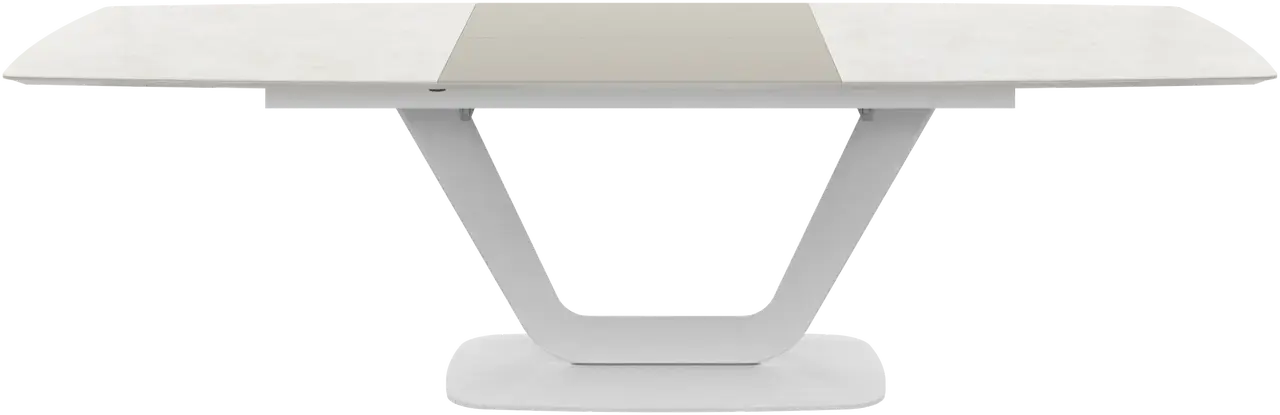 [Alicante - T085]Mesa de comedor extensible Alicante, cerámica gris ceniza/lacado gris ceniza mate/estructura lacada blanca mate/estructura lacada blanca mate.