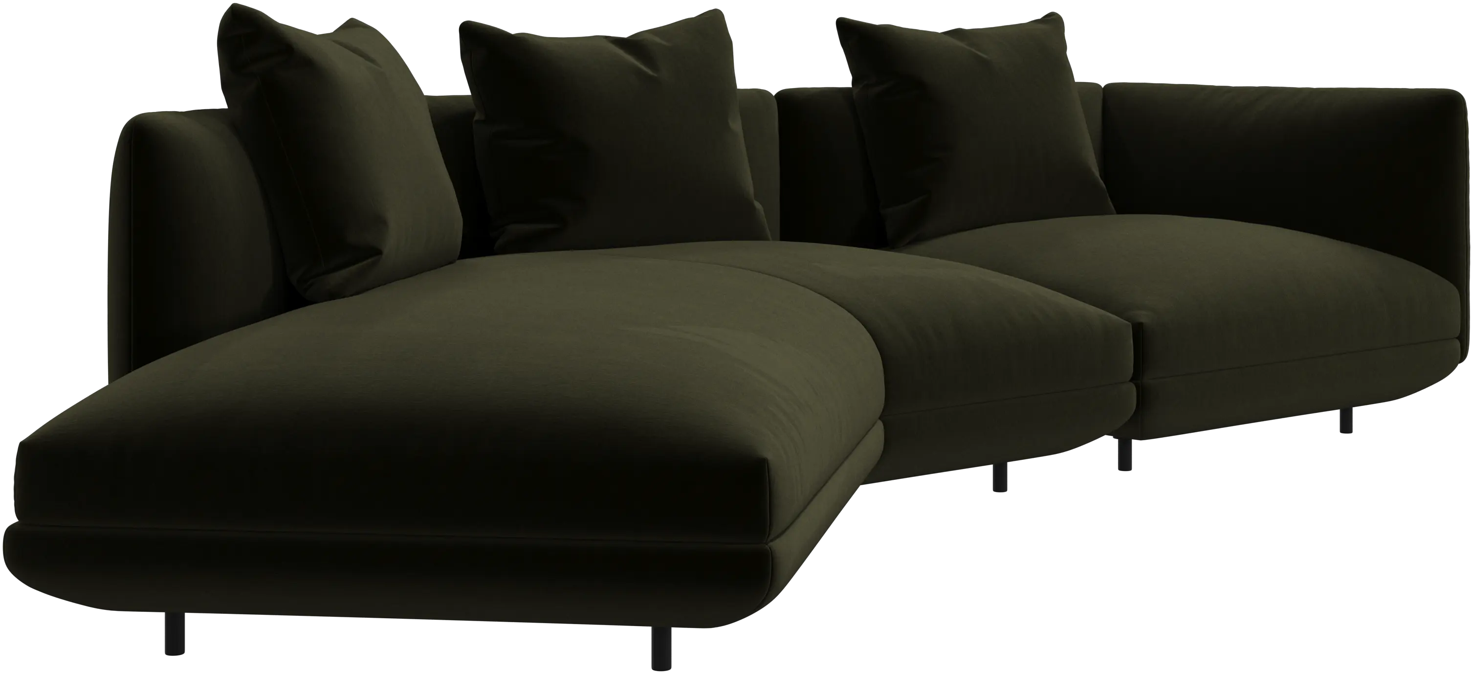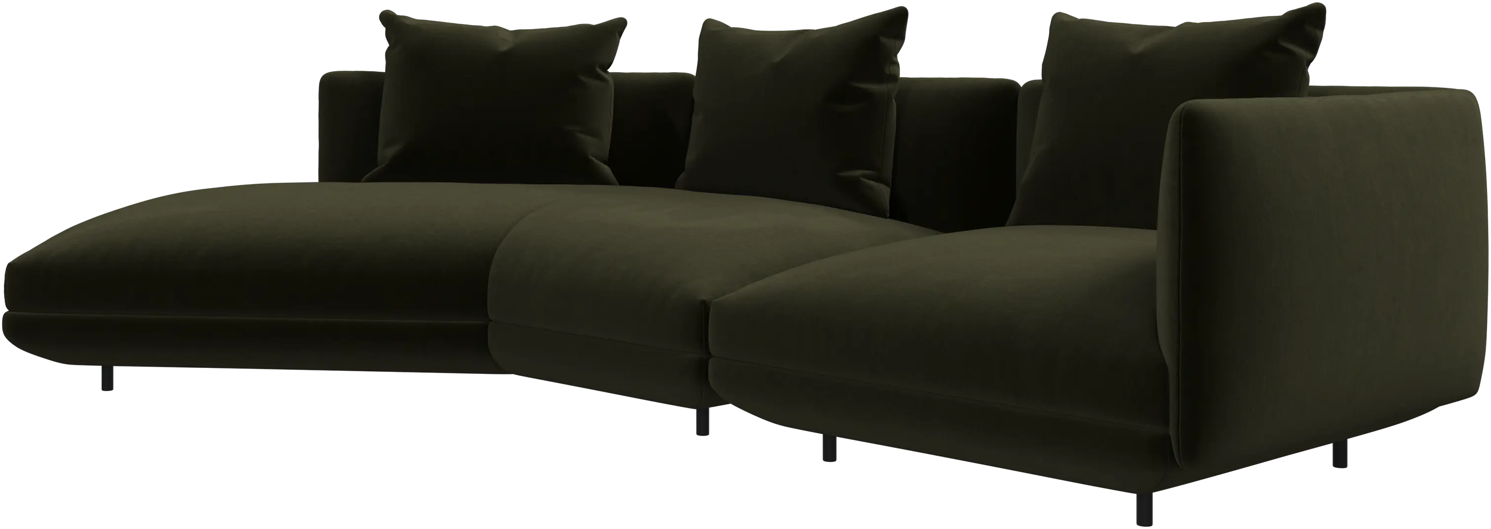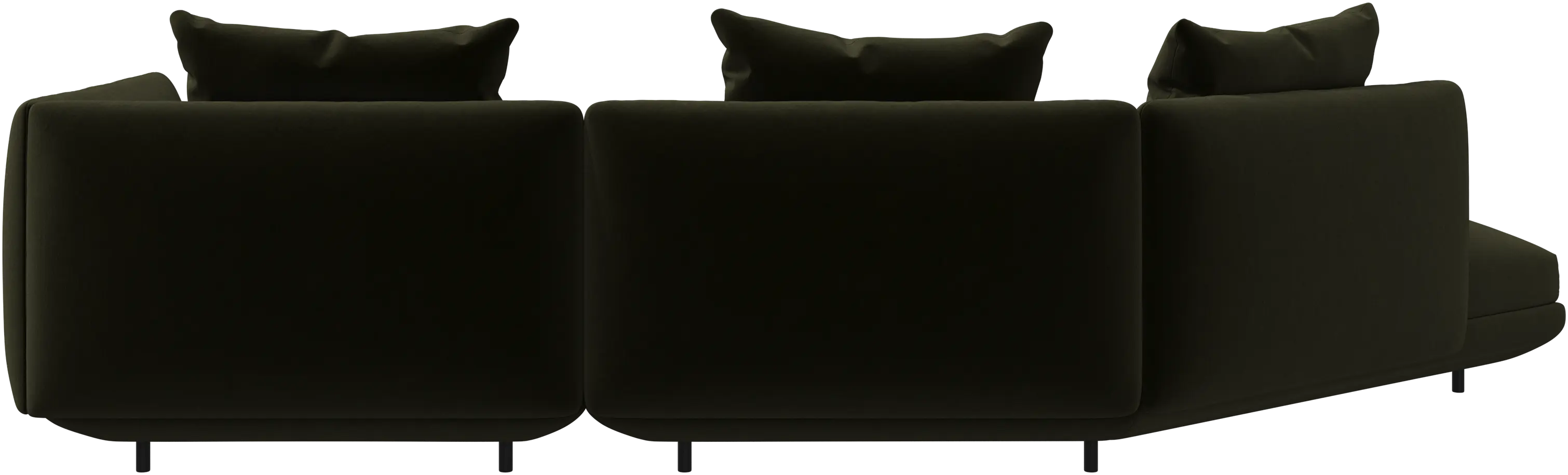 Salamanca destaca por sus generosas proporciones y sus suaves curvas, acentuadas por sus delgadas y discretas patas tubulares negras que crean una imagen baja y flotante.