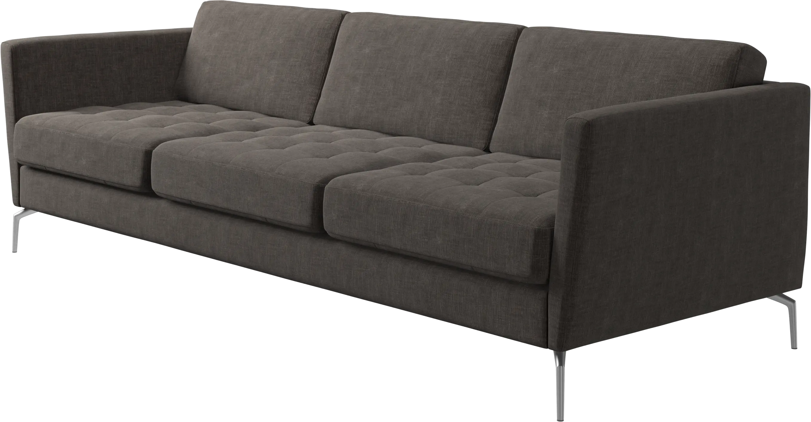El sofá ofrece diferentes diseños de patas. Las altas realzan la expresión elegante y ligera del diseño y, al estar disponibles en varios colores, formas y materiales, dialogan en armonía con el resto de los elementos.