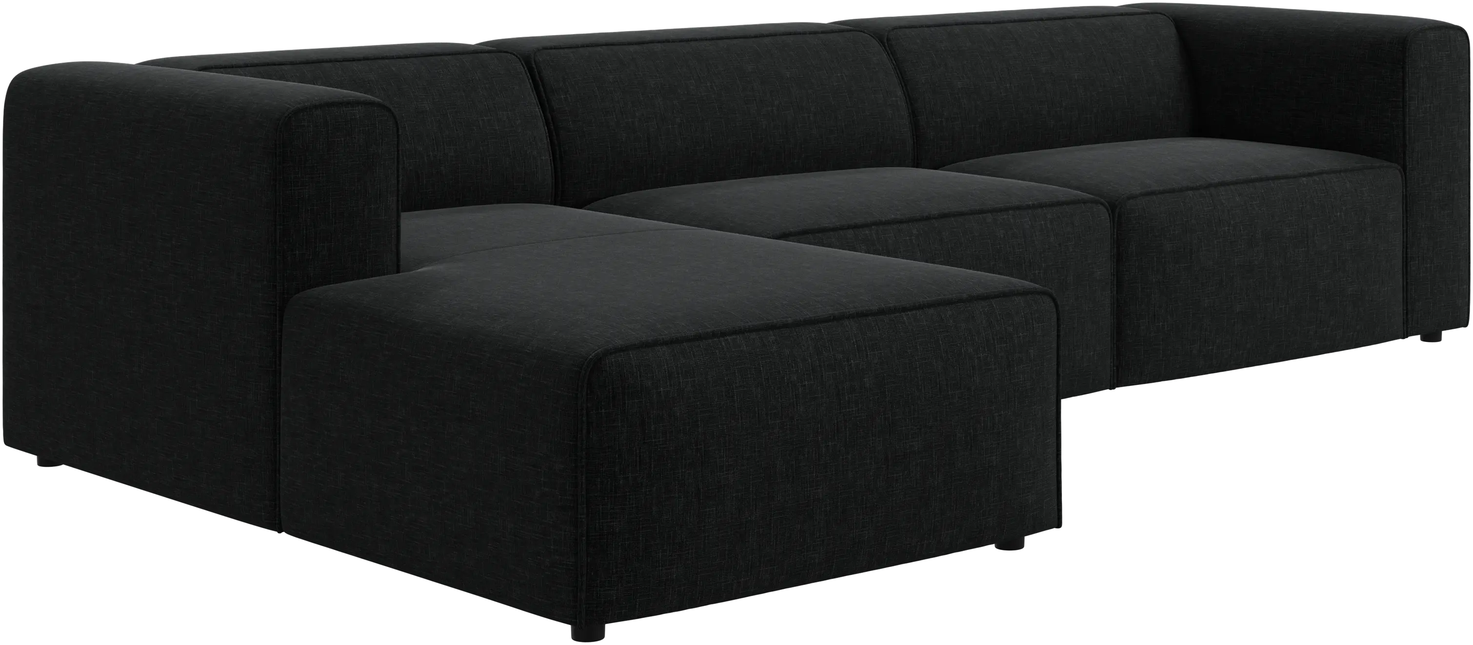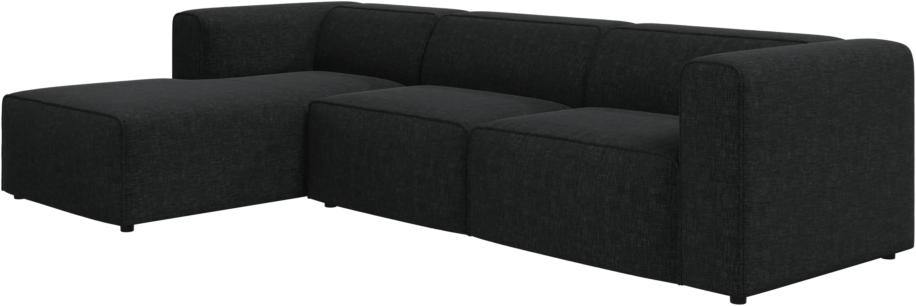 Las patas, con una altura de tan sólo 5 cm, parecen invisibles y el sofá da la impresión de estar casi flotando. Este juego óptico aporta ligereza visual al diseño.