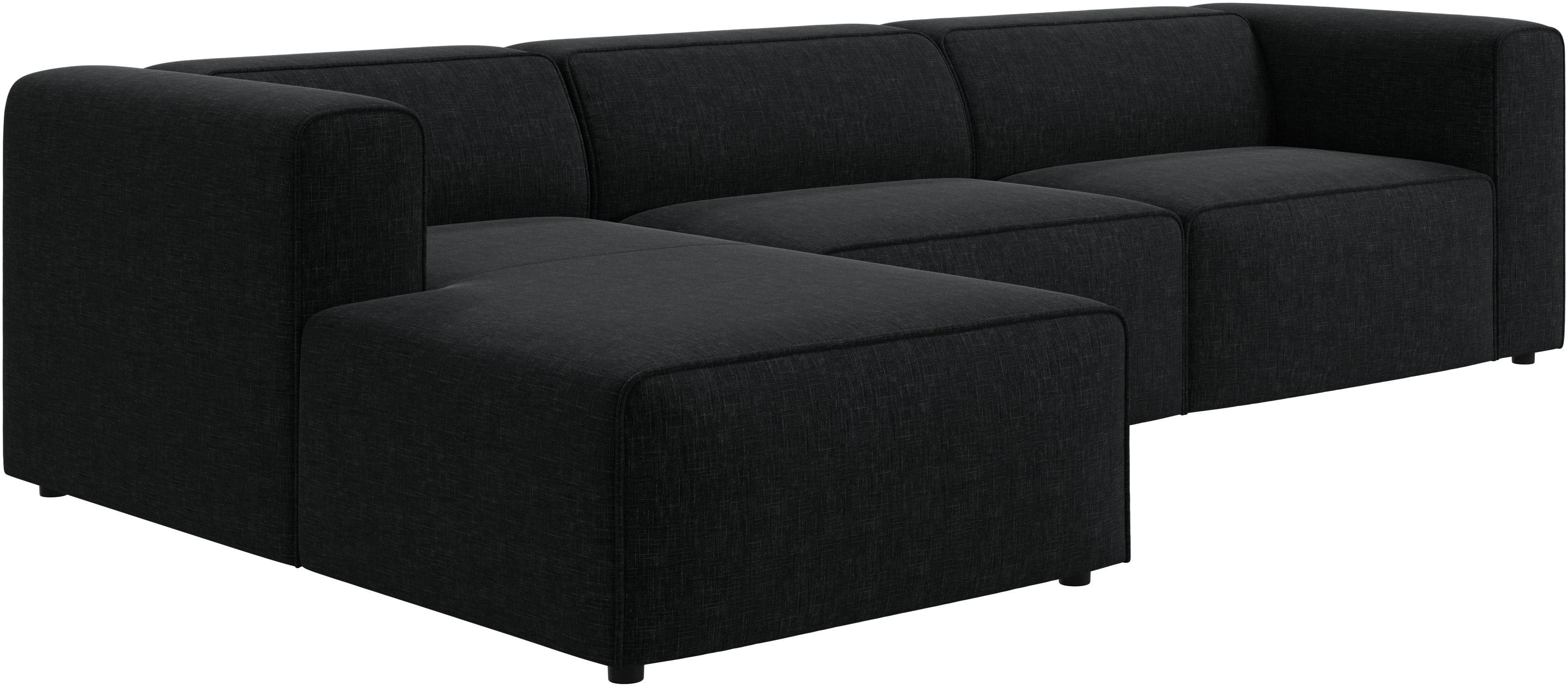 Las patas, con una altura de tan sólo 5 cm, parecen invisibles y el sofá da la impresión de estar casi flotando. Este juego óptico aporta ligereza visual al diseño.