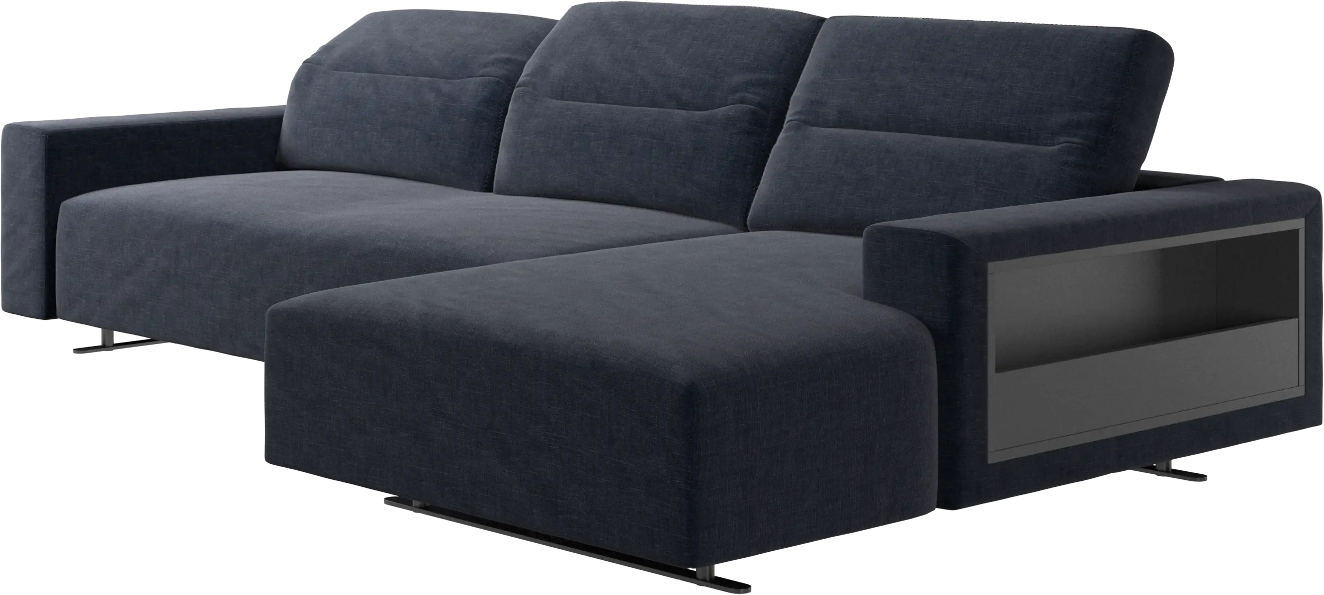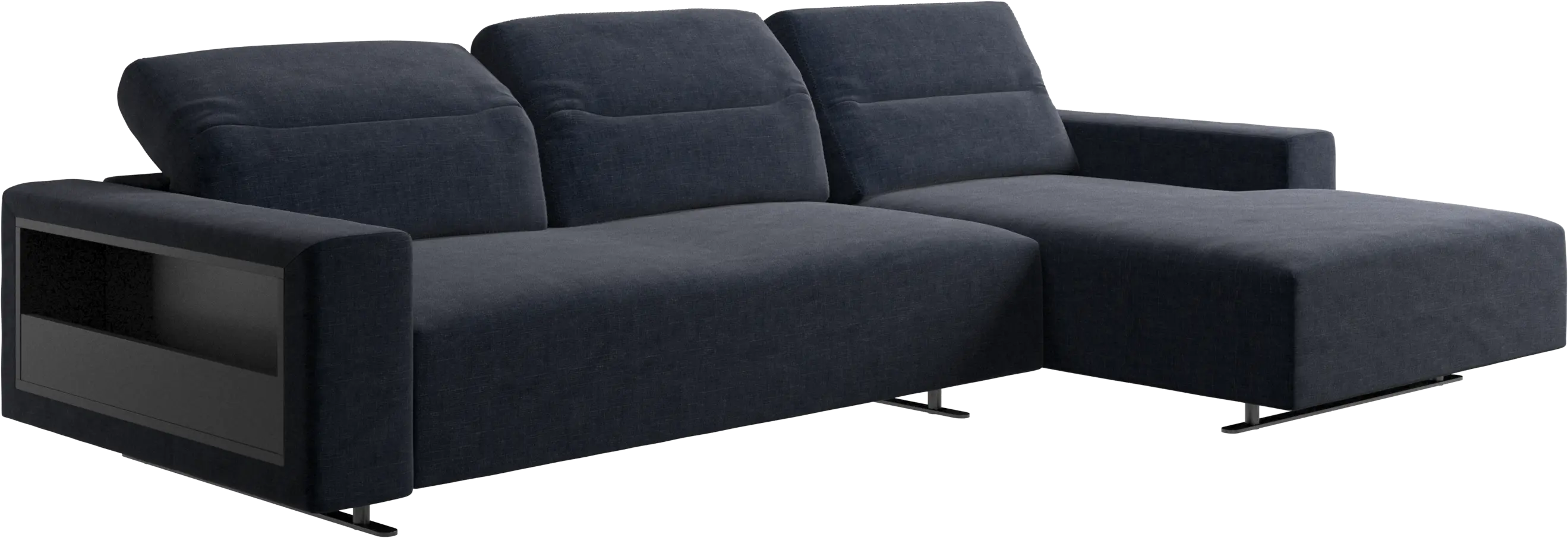 Sofá Hampton con respaldo ajustable, módulo de descanso y almacenamiento en lado izquierdo