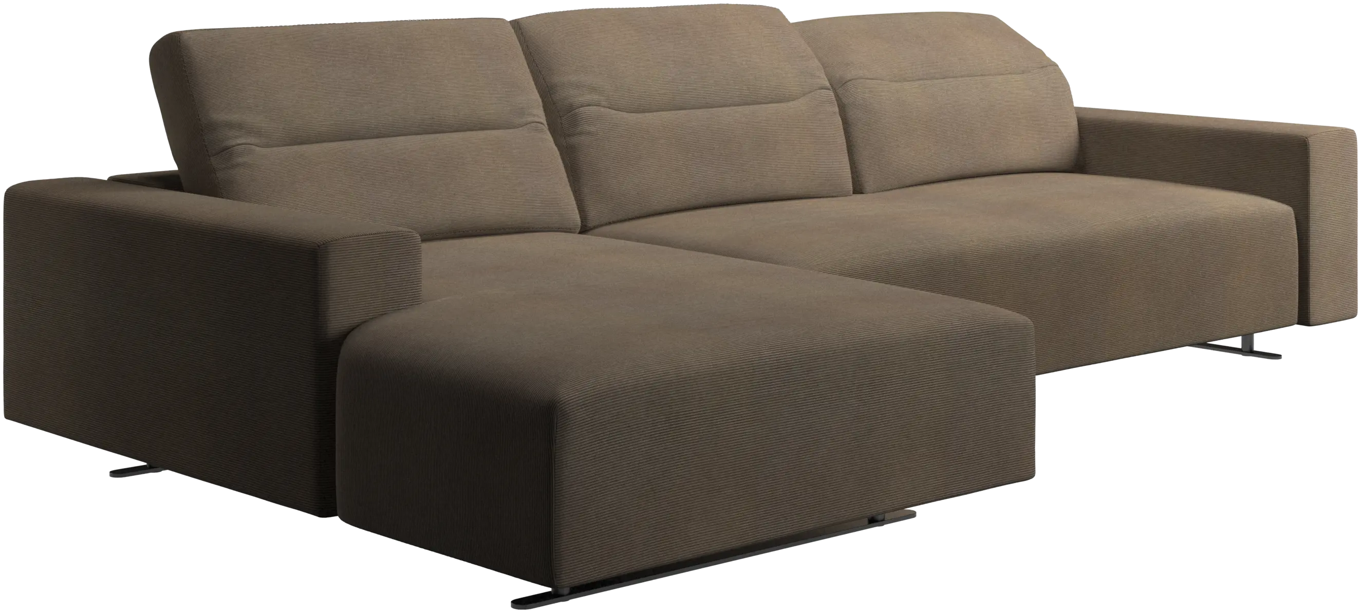 - Sofá Hampton con respaldo ajustable y módulo de descanso en lado izquierdoTela • De metal