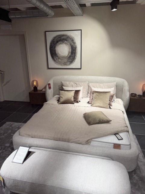 The Bolzano bed blends sculptural form with refined details to create a statement of calm and comfort.