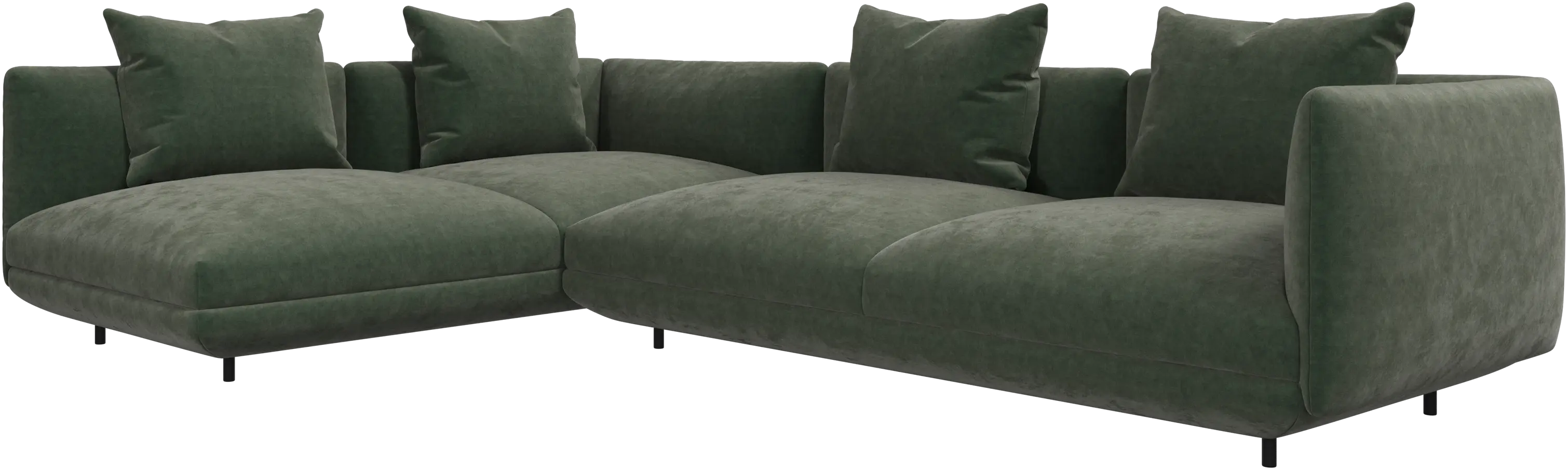 Salamanca se distingue par ses proportions généreuses et ses courbes arrondies, accentuées par des pieds tubulaires noirs fins et discrets pour créer un style bas et 'flottant '.