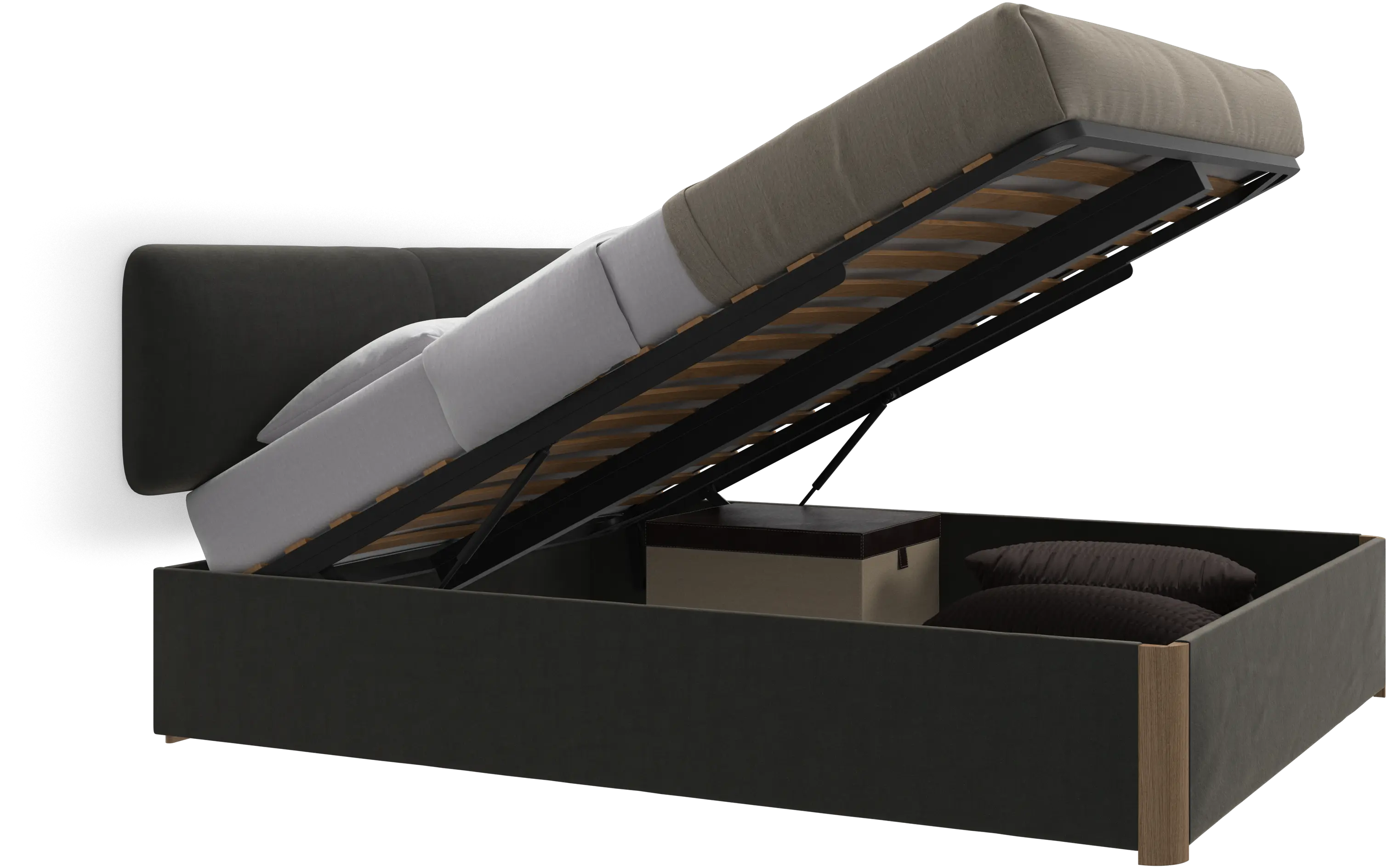 Element lit, tête de lit fixée au lit, avec lattes et solution de stockage, excl. matelas