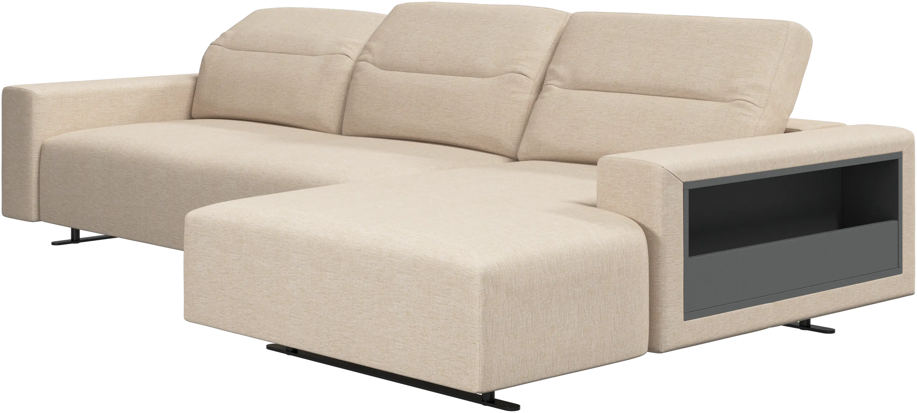 - %Canapé Hampton avec dossier ajustable, méridienne et espace de rangement côté droitTissu • Métal5 498,65 €Avant 6 469,00 €