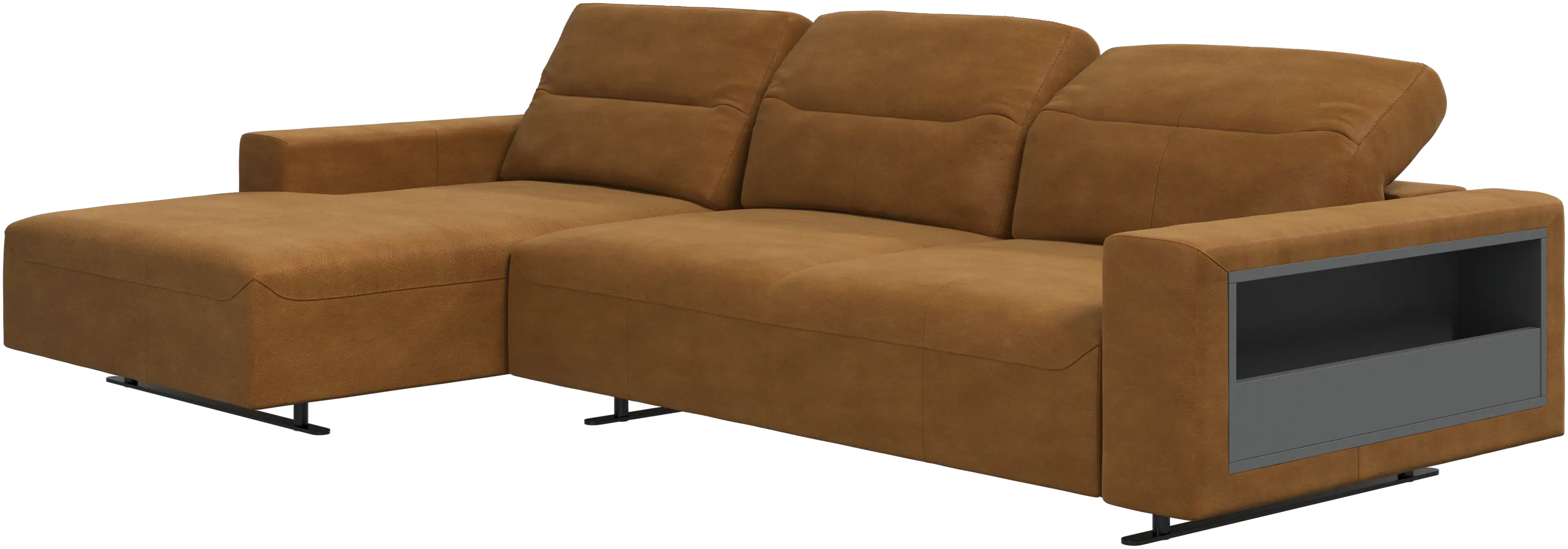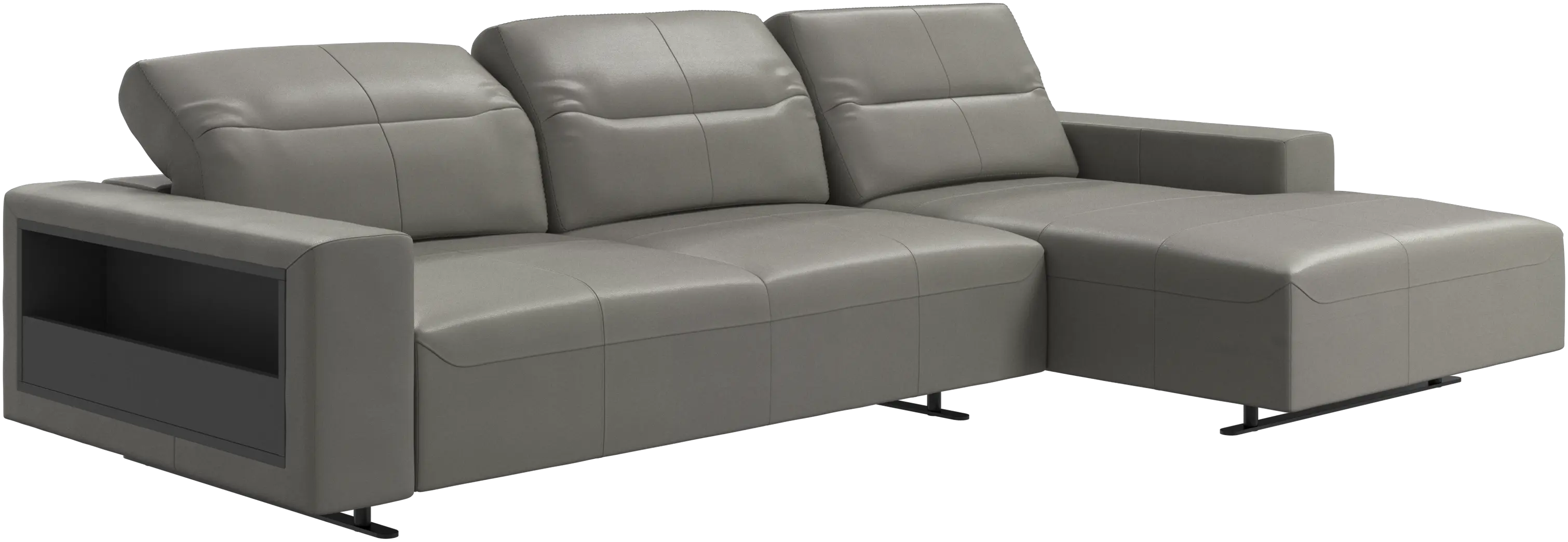 - %Canapé Hampton avec dossier ajustable, méridienne et espace de rangement côté droitCuir • Métal7 904,15 €Avant 9 299,00 €